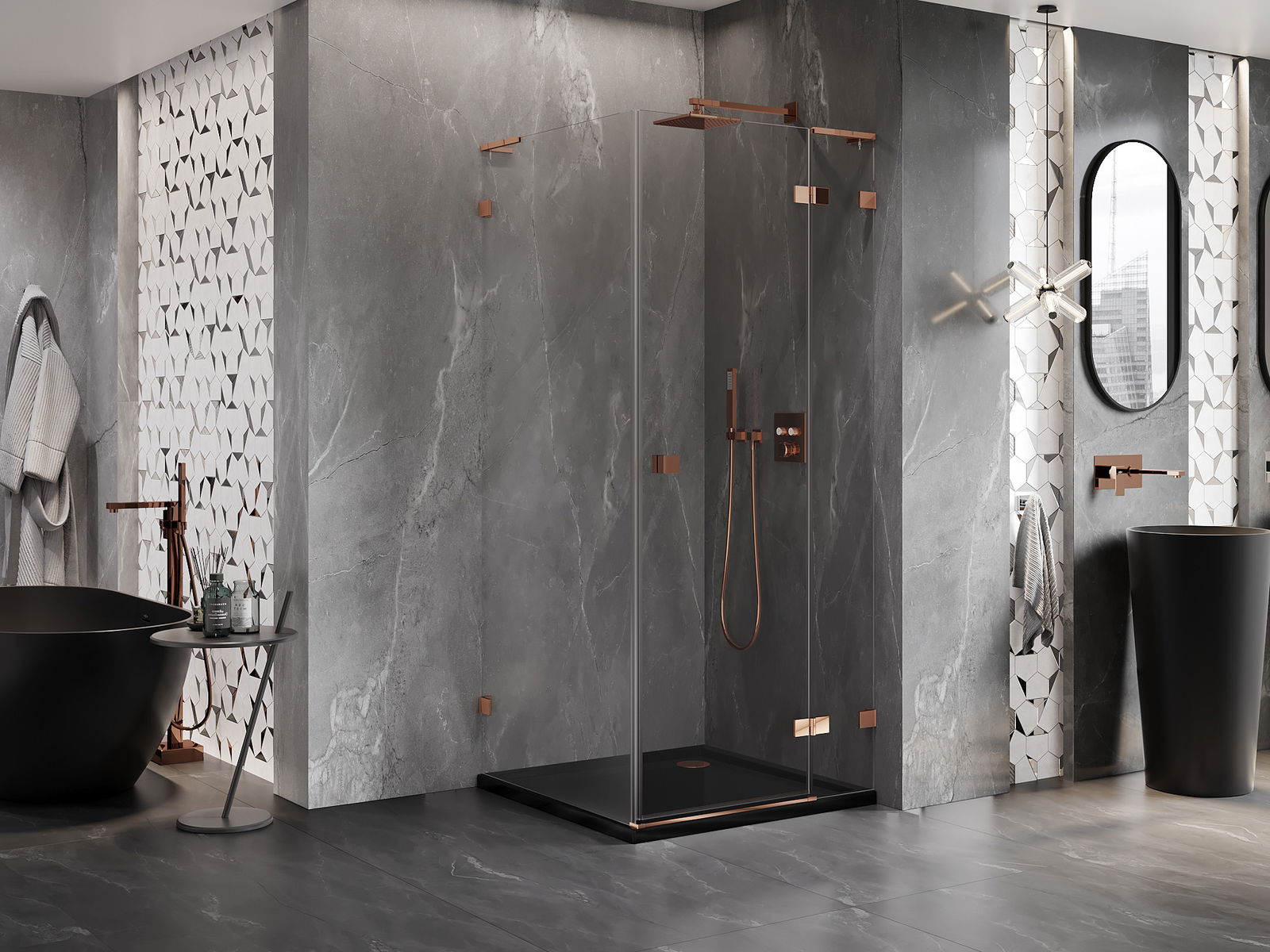 Mexen Lunar L cabine de douche à charnière droite 70 x 70 cm, transparent, or rose - 834L-070-070-60-00-P