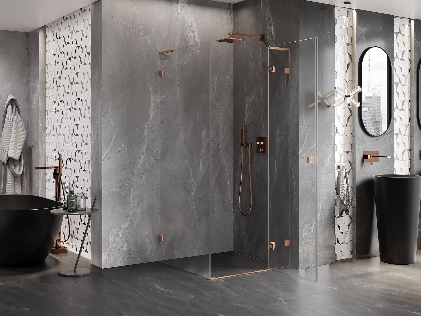 La poignée pratique et confortable est fabriquée en métal durable et résistant. Sa forme à la mode, combinée à une finition assortie à la couleur des profilés, donne à l'ensemble un aspect moderne et stylé, soulignant l'esthétique de chaque salle de bain.