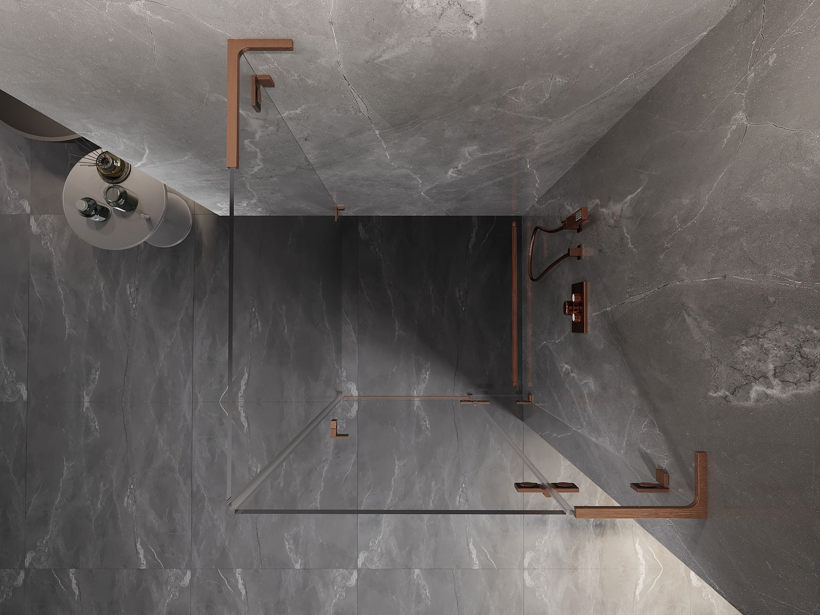 Mexen Lunar L cabine de douche pivotante droite 80 x 80 cm, transparent, cuivre brossé - 834L-080-080-65-00-P
