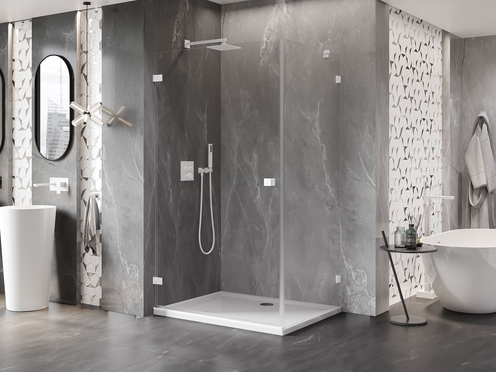 La poignée pratique et confortable est fabriquée en métal durable et résistant. Sa forme à la mode, combinée à une finition assortie à la couleur des profilés, donne à l'ensemble un aspect moderne et stylé, soulignant l'esthétique de chaque salle de bain.