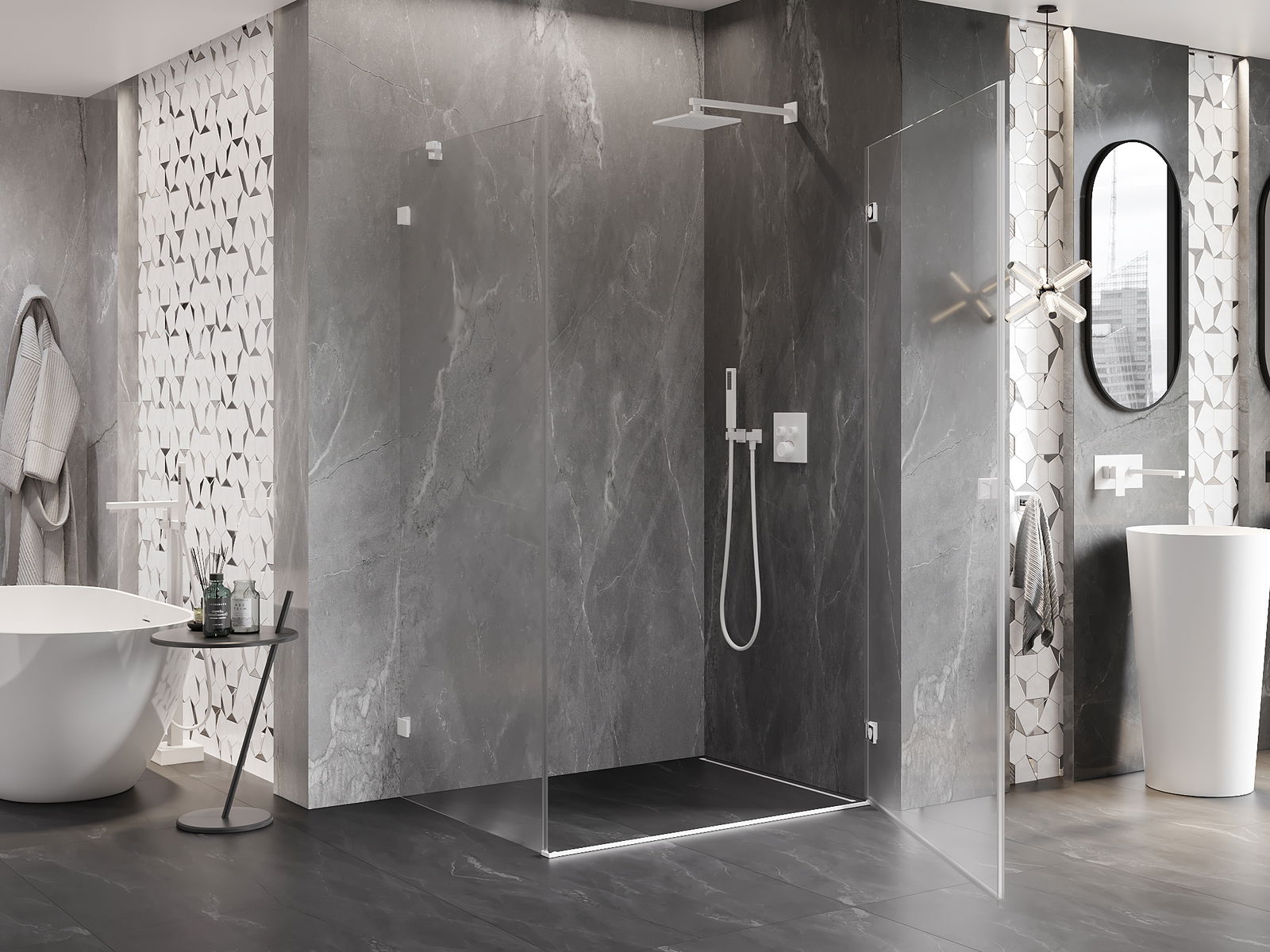 Les pinces ont été fabriquées en laiton très résistant et créent en plus une surface de verre affleurante. C'est un excellent choix qui combine élégance, durabilité et design moderne. Grâce à ces solutions, la douche gagne en esthétique tout en facilitant l'entretien de la propreté.