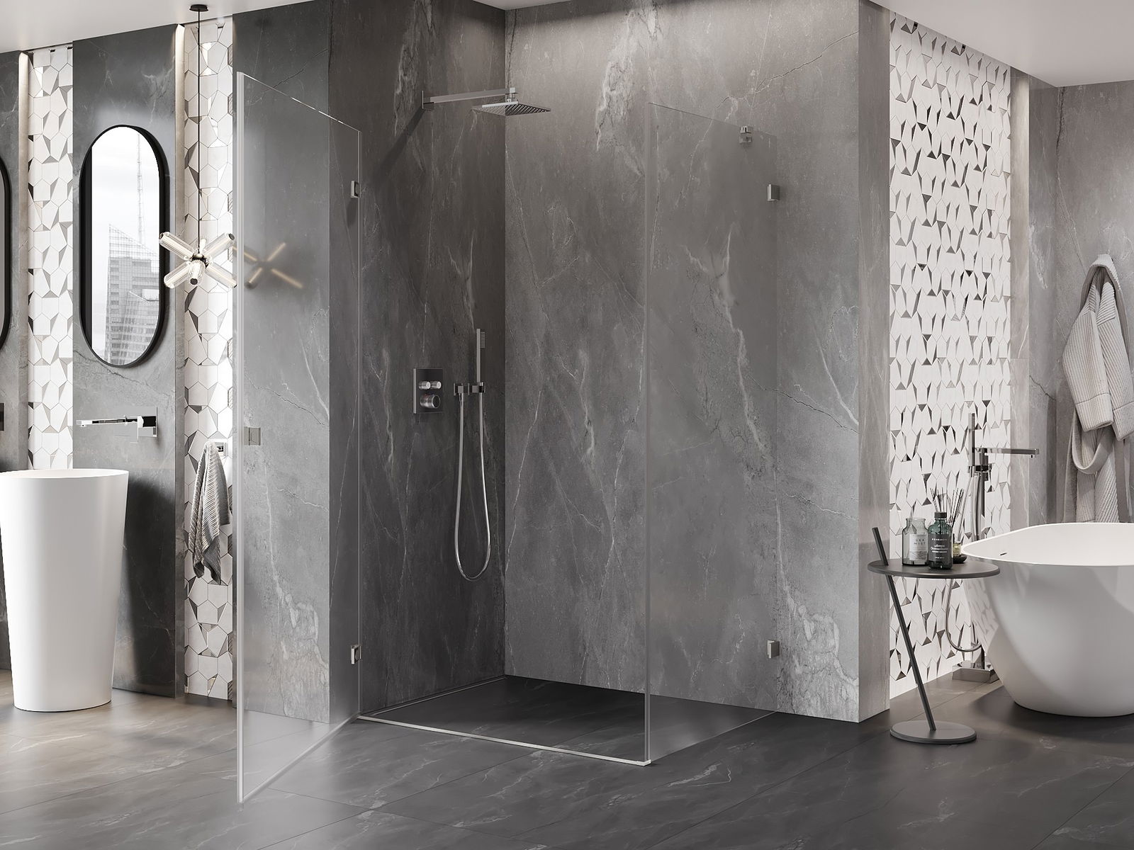 Les pinces ont été fabriquées en laiton très résistant et créent en plus une surface de verre affleurante. C'est un excellent choix qui combine élégance, durabilité et design moderne. Grâce à ces solutions, la douche gagne en esthétique tout en facilitant l'entretien de la propreté.