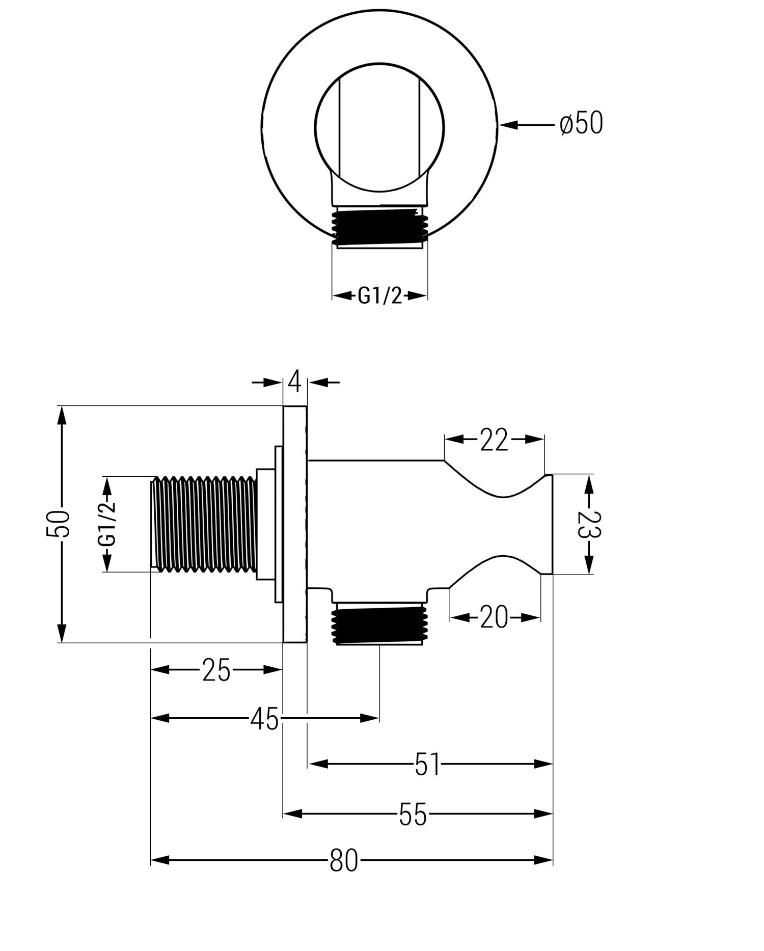 Le raccord fileté 1/2" est un élément standard couramment utilisé dans les installations d'eau intérieures. Il facilite et rend plus intuitive la connexion et l'installation d'éléments de douche supplémentaires.