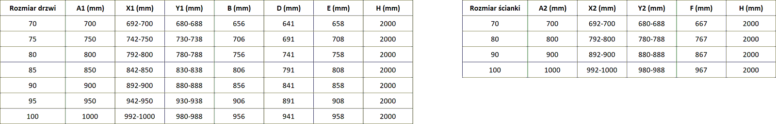 Taille : 95x80 cm (porte droite 95 cm, paroi 80 cm)