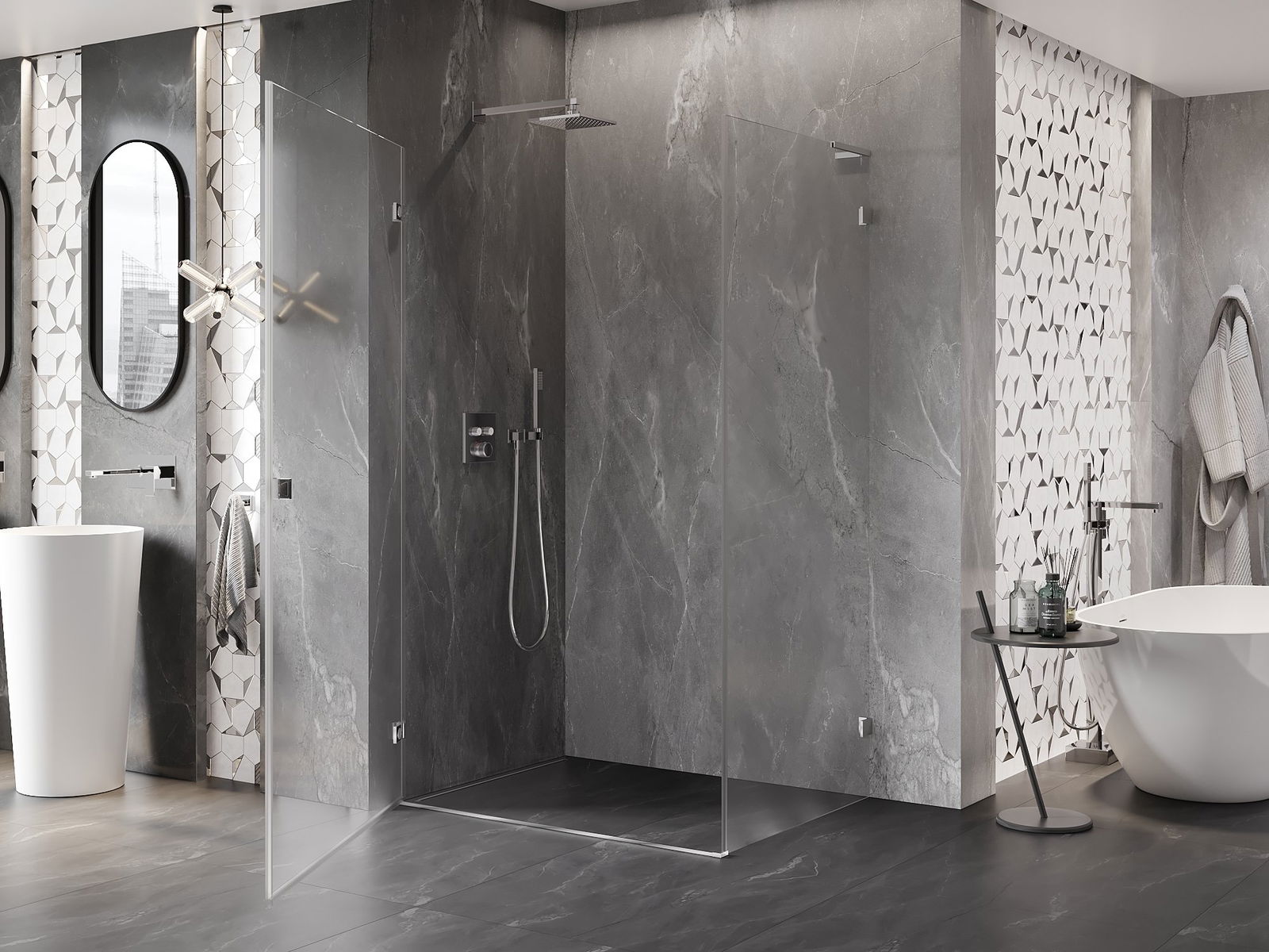 Les pinces ont été fabriquées en laiton très résistant et créent en plus une surface de verre affleurante. C'est un excellent choix qui combine élégance, durabilité et design moderne. Grâce à ces solutions, la douche gagne en esthétique tout en facilitant l'entretien de la propreté.