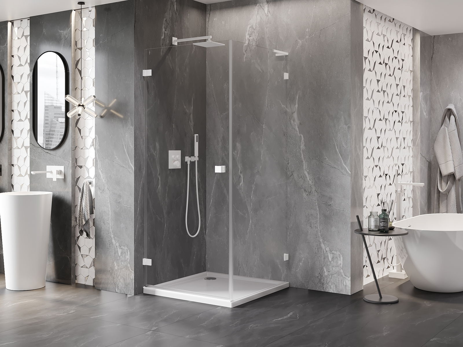 La poignée pratique et confortable est fabriquée en métal durable et résistant. Sa forme à la mode, combinée à une finition assortie à la couleur des profilés, donne à l'ensemble un aspect moderne et stylé, soulignant l'esthétique de chaque salle de bain.