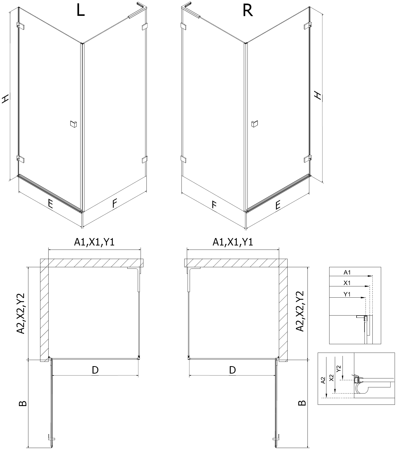 Épaisseur du verre : porte 6 mm, paroi 8 mm