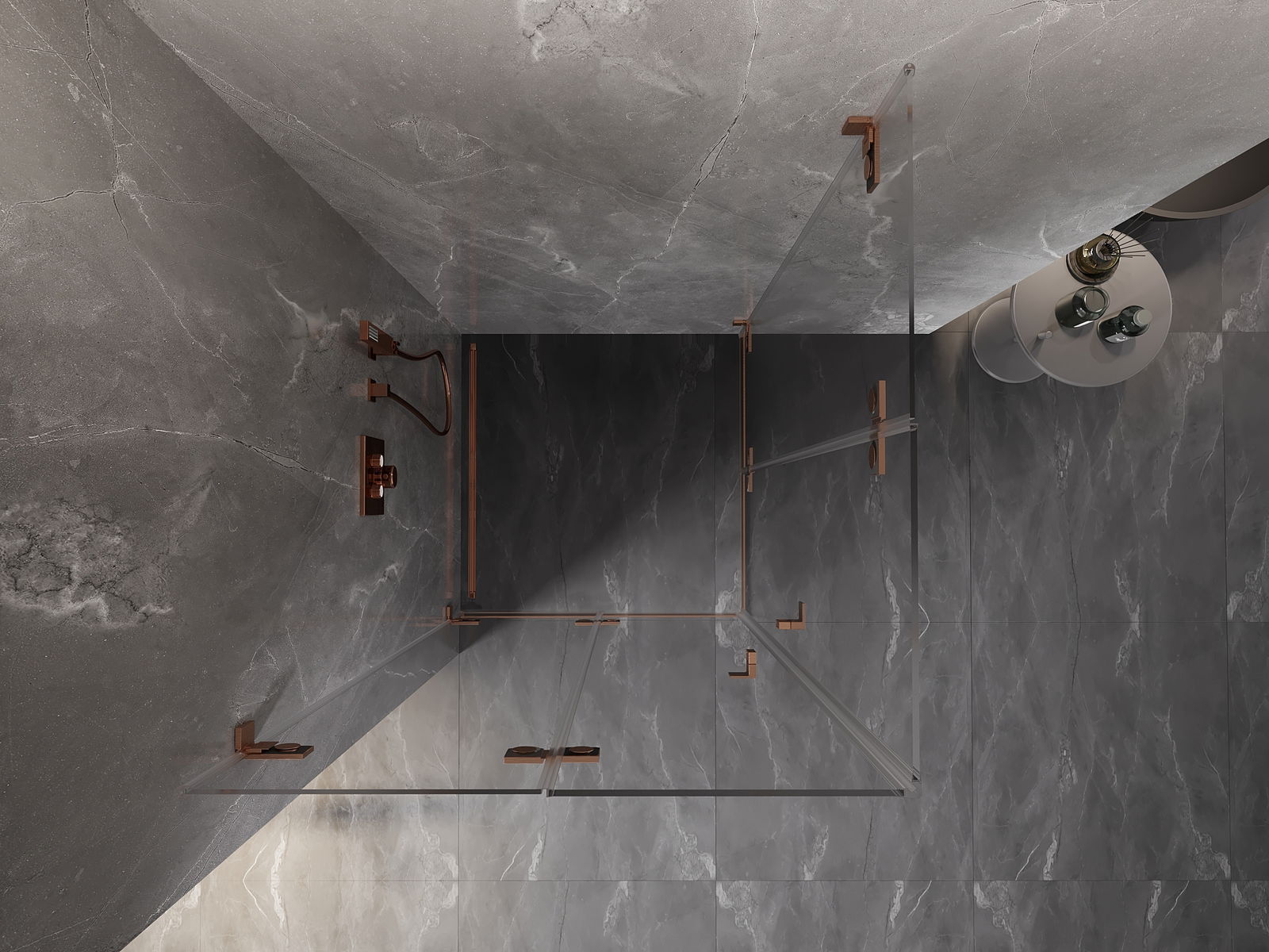 Mexen Lunar-F Duo cabine de douche pliable 85 x 85 cm, transparent, cuivre brossé - 836-085L-085P-65-00