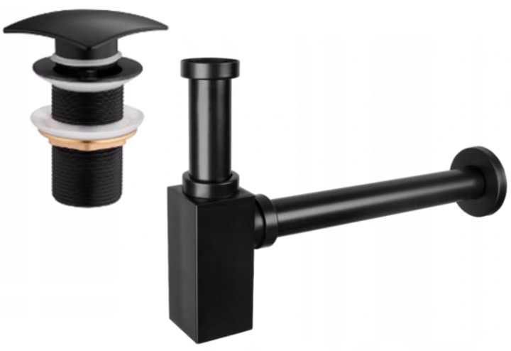 Mexen demi-siphon pour lavabo carré avec bouchon clic-clac, sans trop-plein, noir - 7991660-70