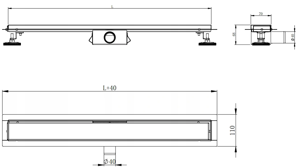 Le drain est équipé de pieds réglables, permettant de l'ajuster à la hauteur appropriée et de le mettre à niveau sur une surface irrégulière. Ainsi, le drain s'adapte encore mieux aux conditions de la salle de bain.