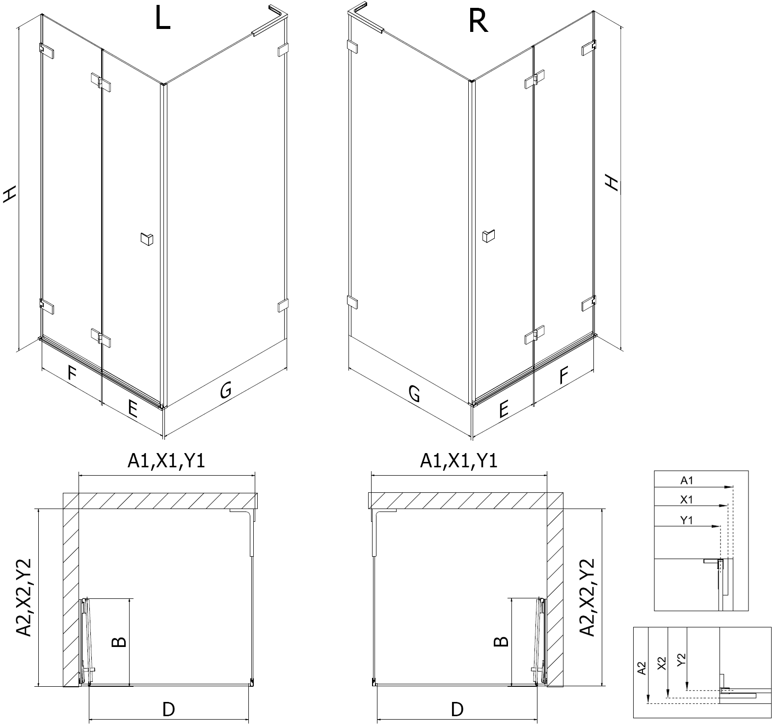 Épaisseur du verre : porte 6 mm, paroi 8 mm