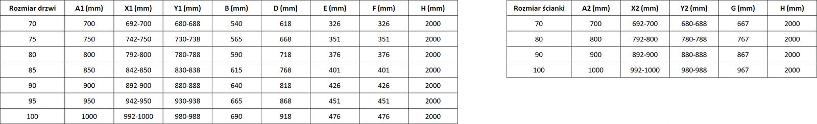 Épaisseur du verre : portes 6 mm, paroi 8 mm