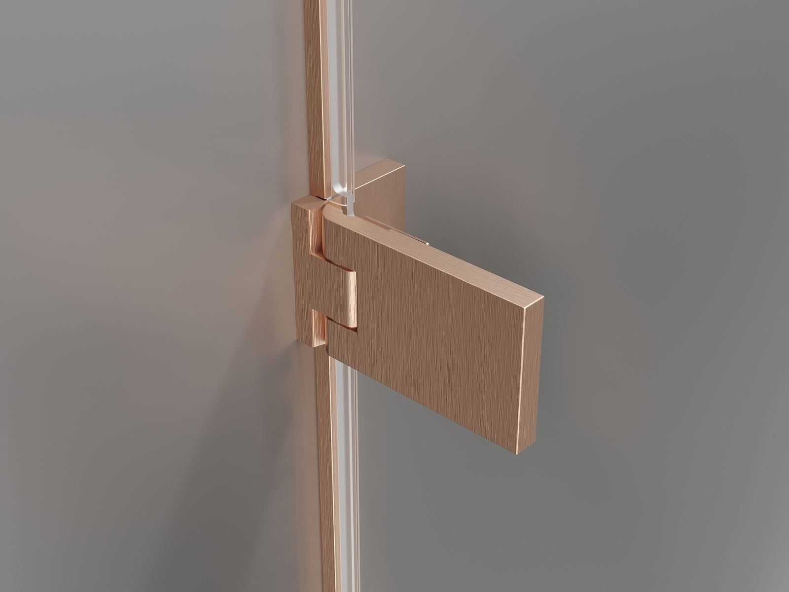 Pinces et charnières en laiton affleurant à la surface du verre