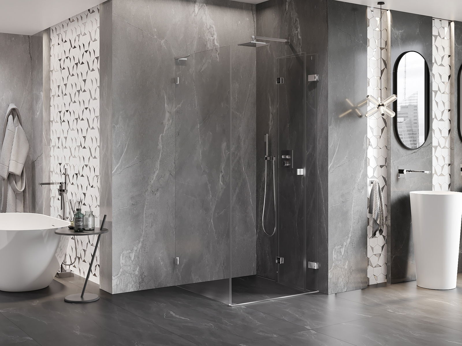 La poignée pratique et confortable est fabriquée en métal durable et résistant. Sa forme à la mode, combinée à une finition assortie à la couleur des profilés, donne à l'ensemble un aspect moderne et stylé, soulignant l'esthétique de chaque salle de bain.