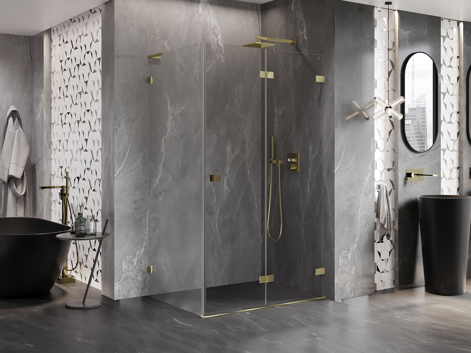Mexen Lunar-F L cabine de douche pliante droite 85 x 80 cm, transparente, dorée - 836L-085-080-50-00-P