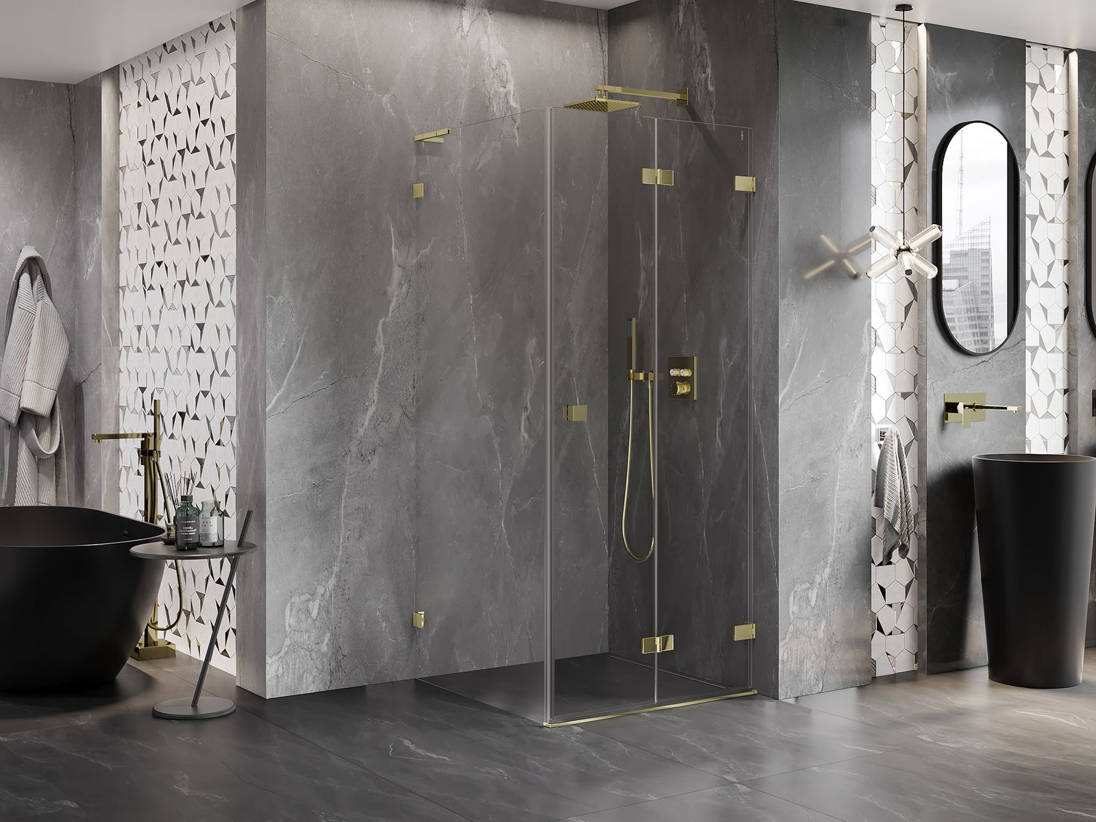Mexen Lunar-F L cabine de douche pliante droite 90 x 90 cm, transparente, dorée - 836L-090-090-50-00-P