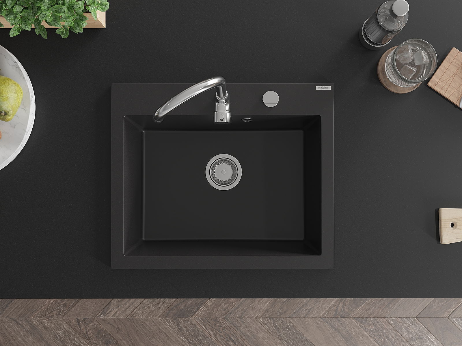 L'évier a un trou sous-meulé de 35 mm de diamètre à percer soi-même. Il peut être utilisé, entre autres, pour installer un distributeur de liquide, ce qui éliminera la présence de bouteilles en plastique dans la cuisine et lui donnera une finition élégante.