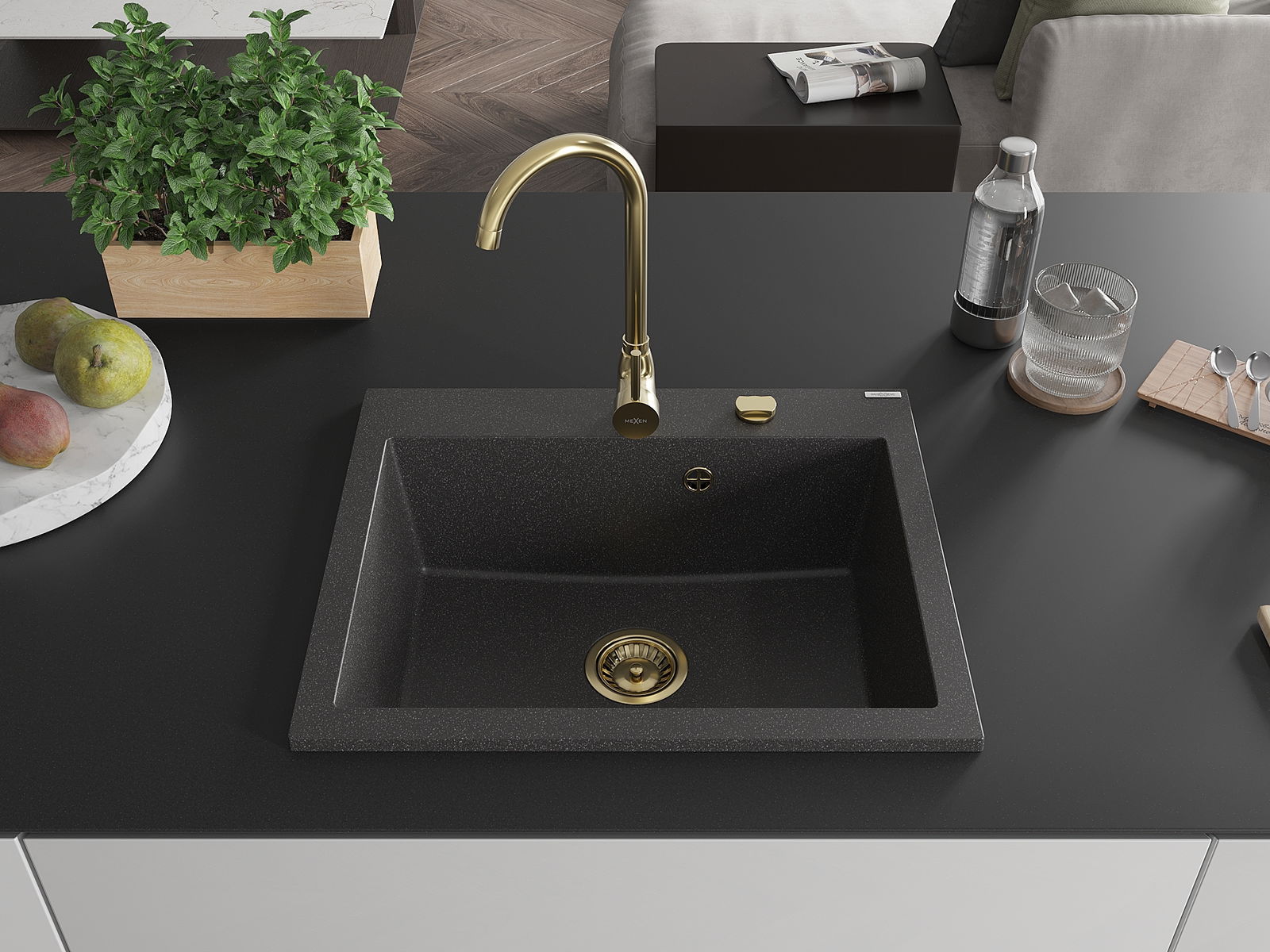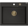 Mexen Elix évier en granit 1 bac 600 x 500 mm, noir moucheté, siphon doré - 6525601005-76-G