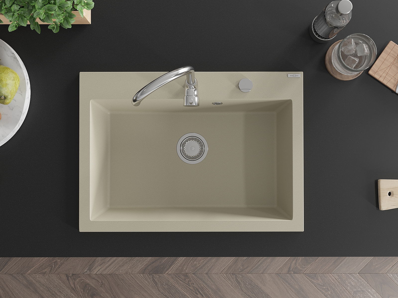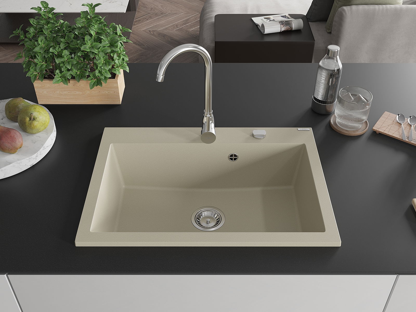 L'évier a été fabriqué en granit de haute qualité. Il constitue un complément élégant et surtout pratique pour chaque cuisine, quel que soit son style. La haute qualité et la durabilité du granit garantissent une utilisation de plusieurs années.