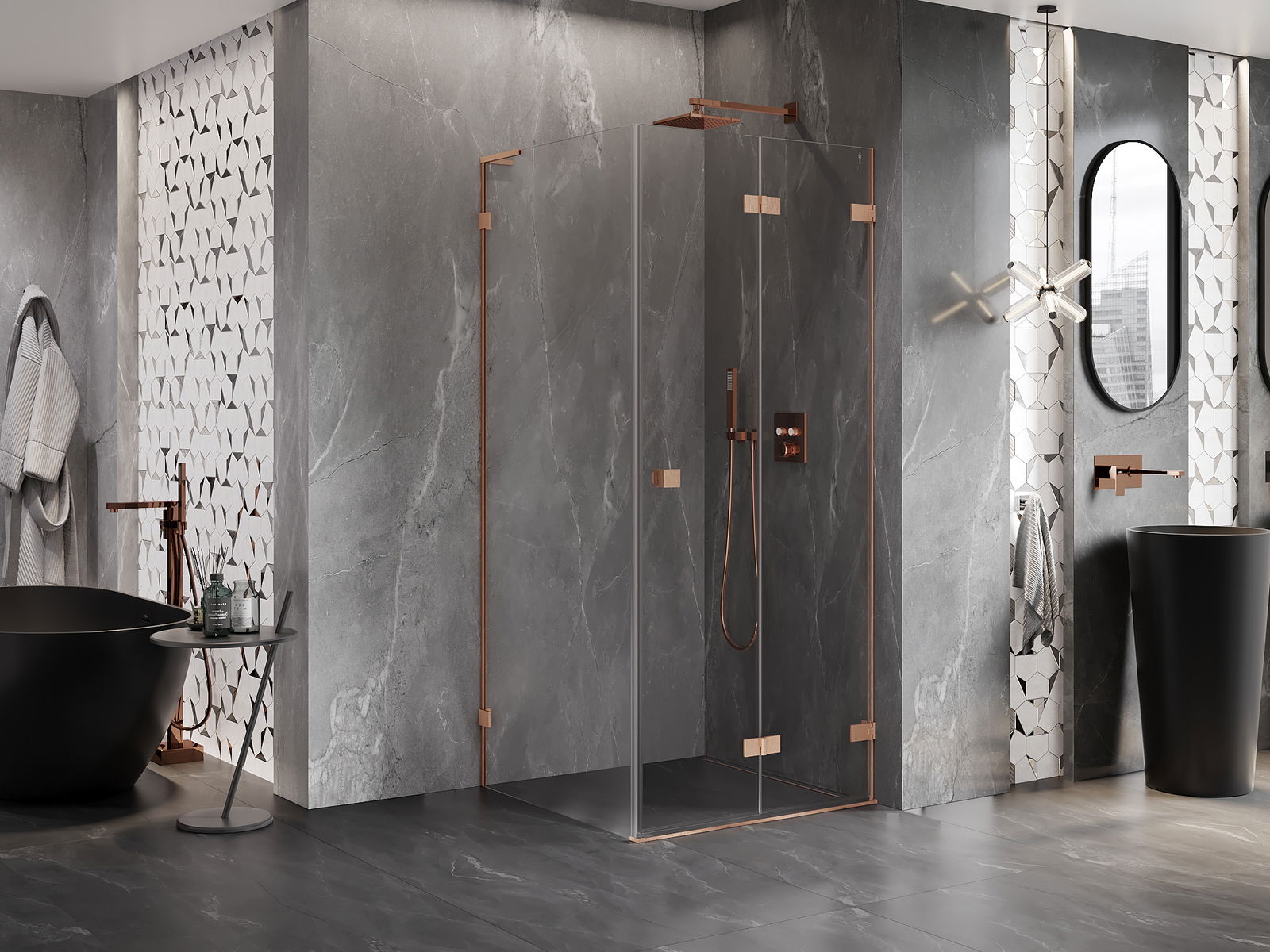 Mexen Lunar-F L cabine de douche pliable droite 100 x 100 cm, transparent, cuivre brossé - 836L-100-100-65-00-P