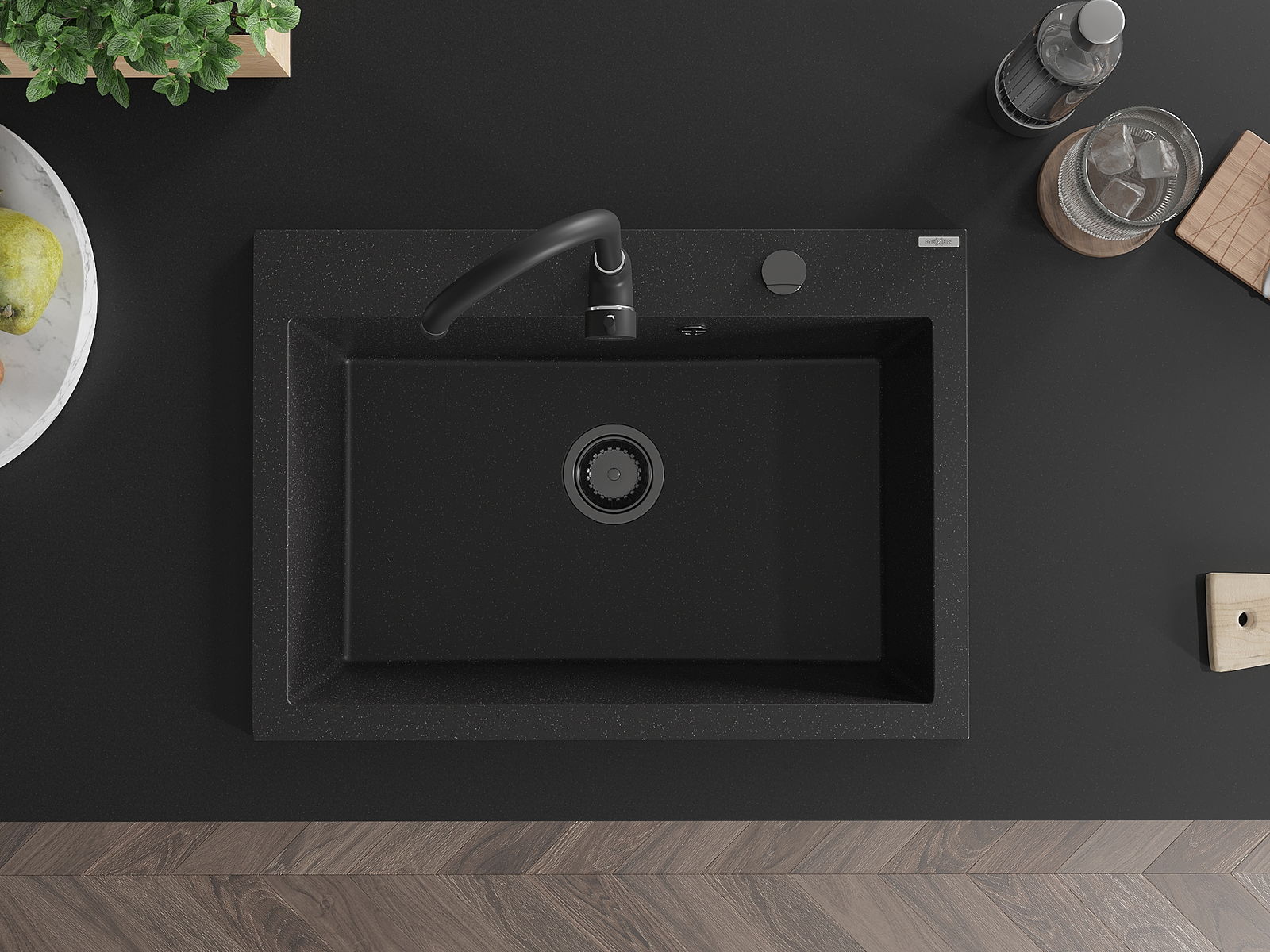 L'évier a un trou sous-meulé de 35 mm de diamètre à percer soi-même. Il peut être utilisé, entre autres, pour installer un distributeur de liquide, ce qui éliminera la présence de bouteilles en plastique dans la cuisine et lui donnera une finition élégante.
