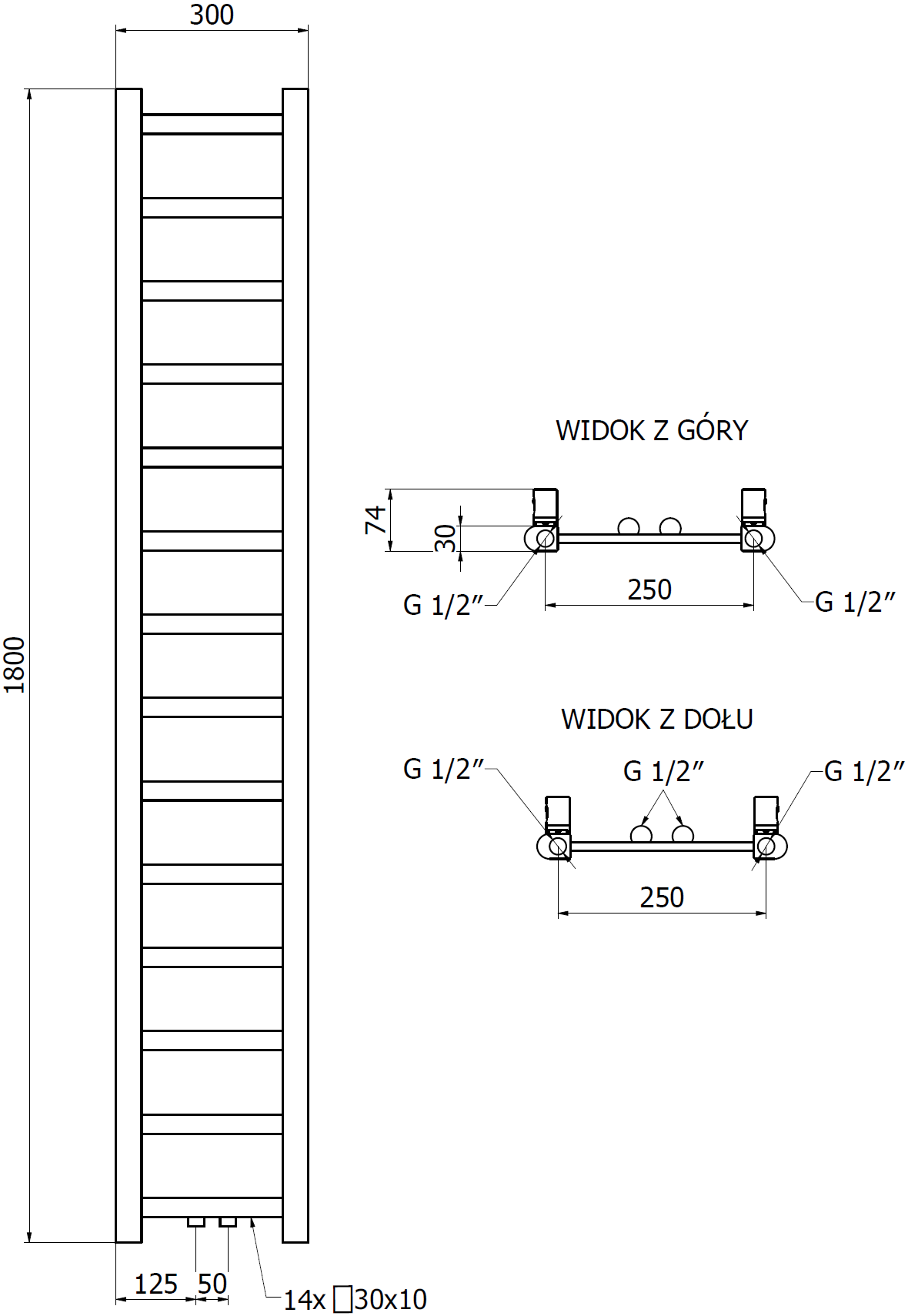 Mexen Bolt radiateur de salle de bain 1800 x 300 mm, 351 W, anthracite - W126-1800-300-00-66