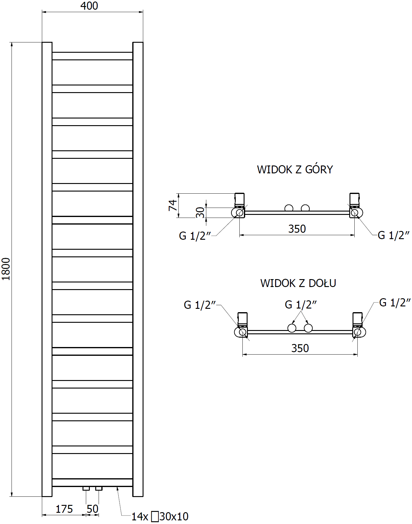 Mexen Bolt radiateur de salle de bain 1800 x 400 mm, 406 W, anthracite - W126-1800-400-00-66