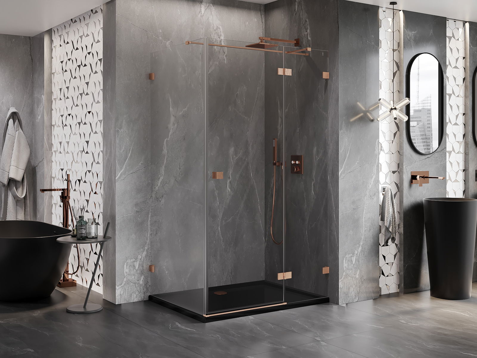 Mexen Lunar T cabine de douche pivotante droite 120 x 90 cm, transparent, cuivre brossé - 834T-120-090-65-00-P