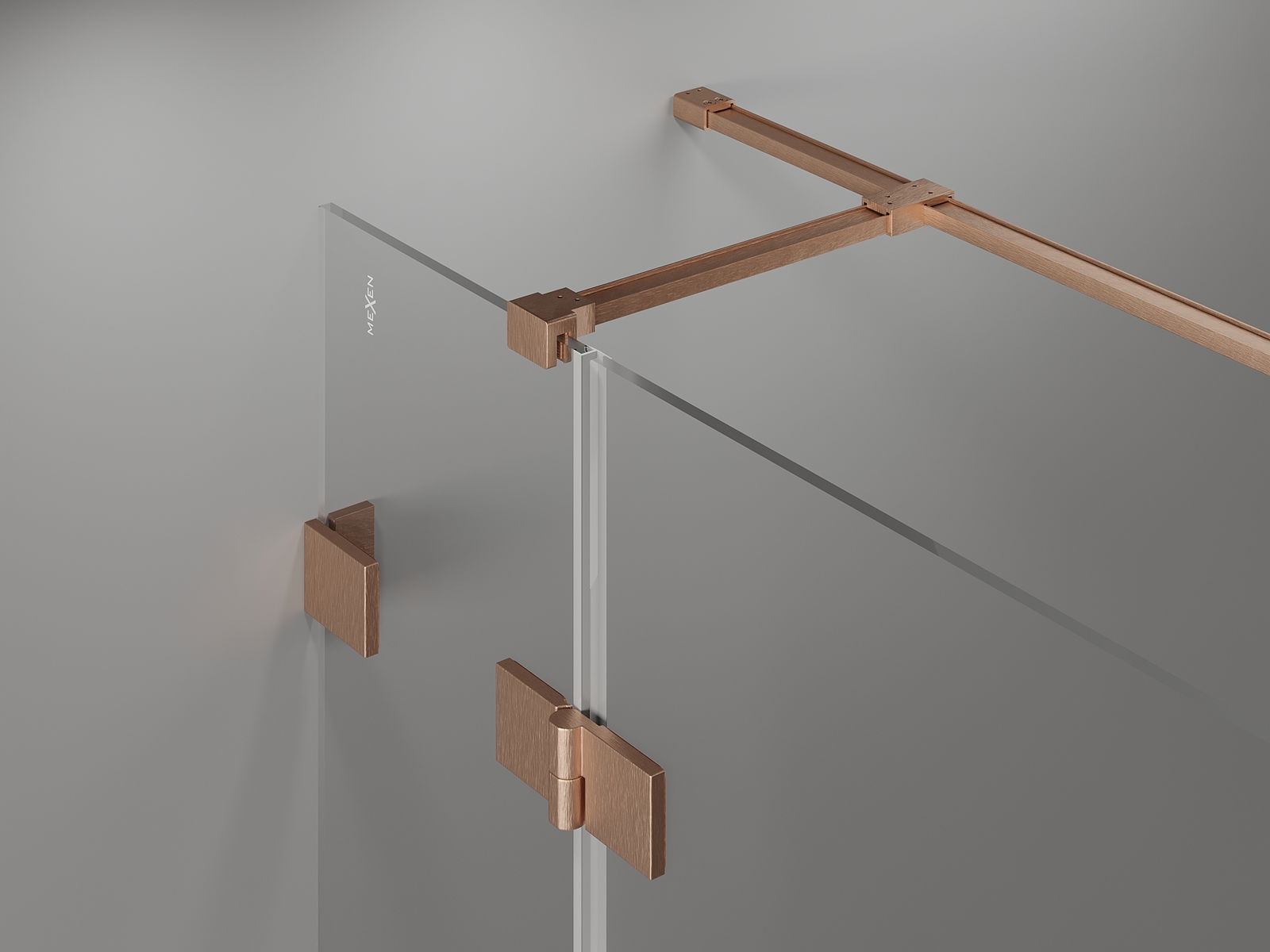 Mexen Lunar T cabine de douche avec porte battante droite 140 x 110 cm, transparent, cuivre brossé - 834T-140-110-65-00-P