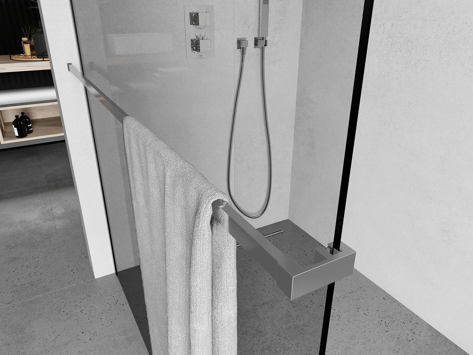 La barre pour serviettes montée sur une paroi de douche est une solution pratique et fonctionnelle qui permet de suspendre commodément les serviettes à proximité immédiate de la zone de baignade, augmentant ainsi le confort de l'utilisation quotidienne.