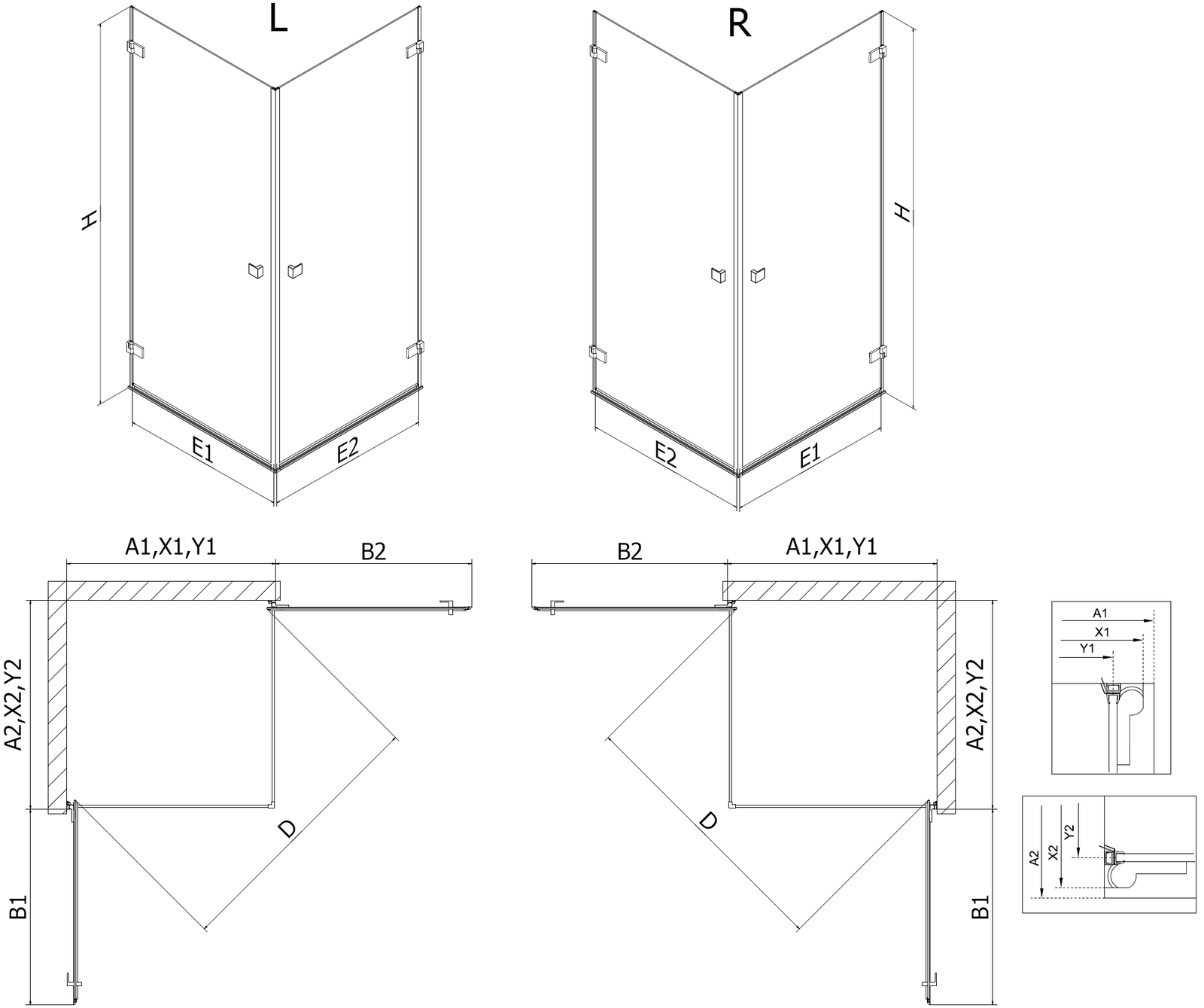 Les portes battantes permettent une liberté maximale lors de l'utilisation. Elles possèdent des charnières solides fabriquées à partir d'un matériau durable, qui ne posent pas de difficultés pour le nettoyage et permettent un accès facile à l'intérieur de la cabine.