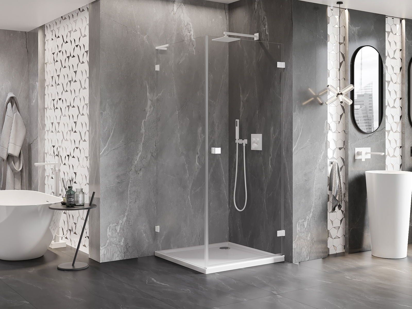 La poignée pratique et confortable est fabriquée en métal durable et résistant. Sa forme à la mode, combinée à une finition assortie à la couleur des profilés, donne à l'ensemble un aspect moderne et stylé, soulignant l'esthétique de chaque salle de bain.