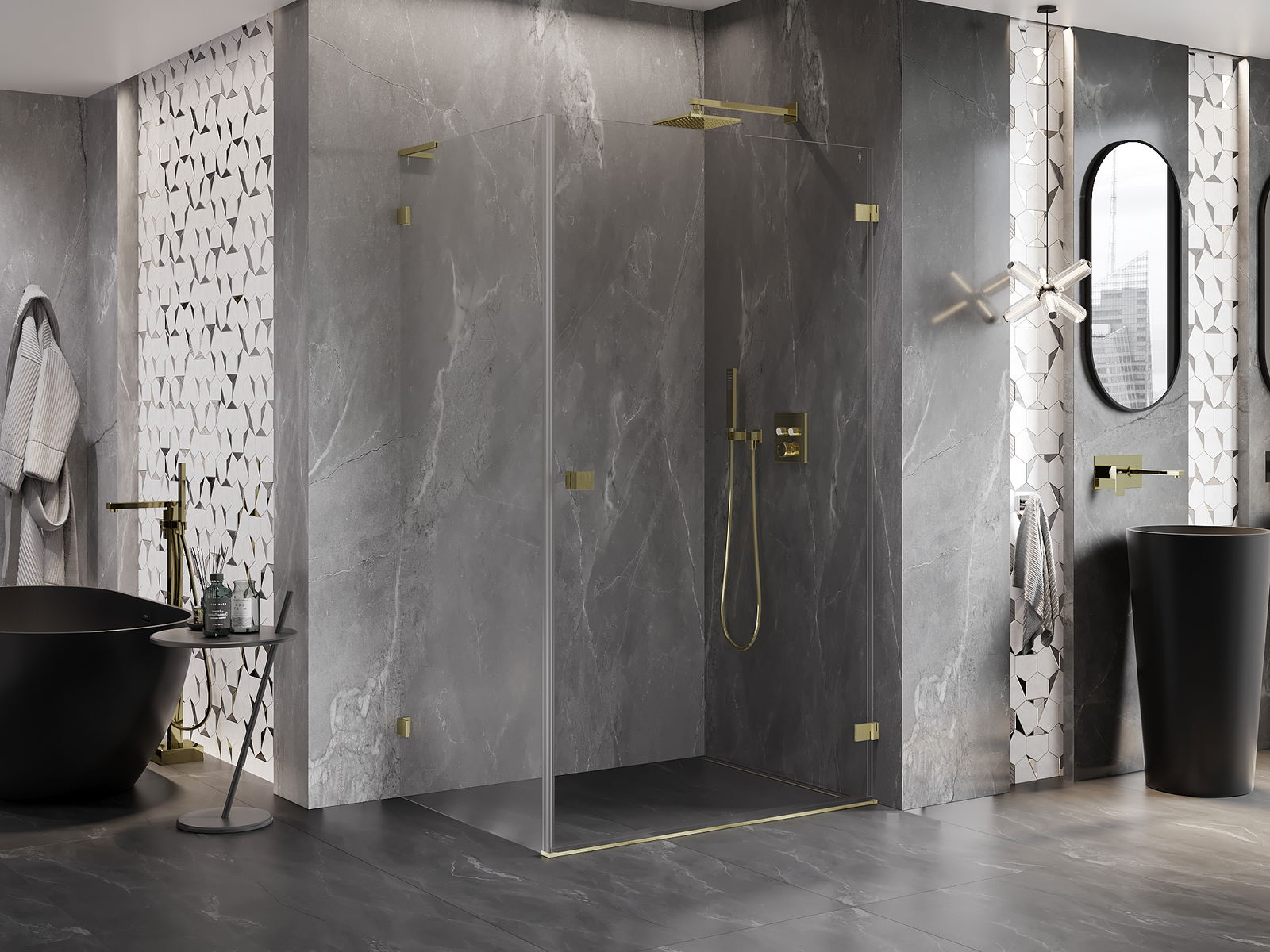 Mexen Lunar-B L cabine de douche à charnière droite 90 x 80 cm, transparent, or brossé - 832L-090-080-55-00-P