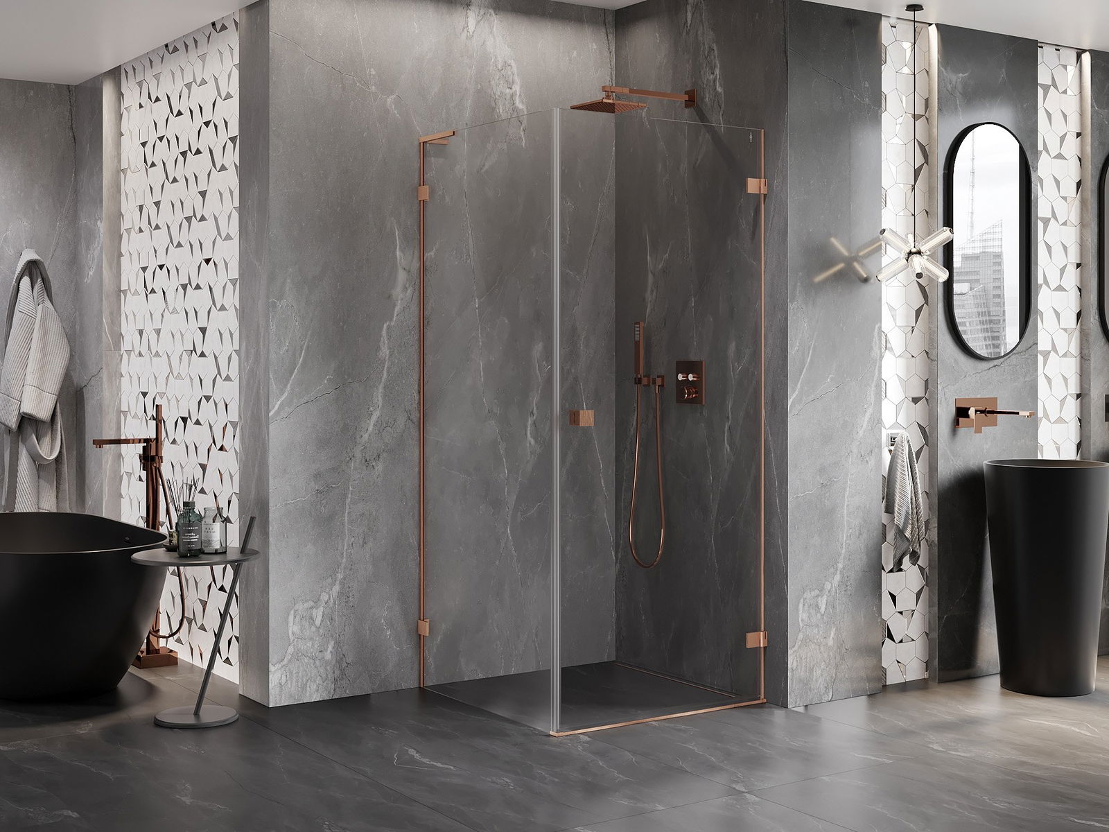 Mexen Lunar-B L cabine de douche pivotante droite 70 x 70 cm, transparent, cuivre brossé - 832L-070-070-65-00-P