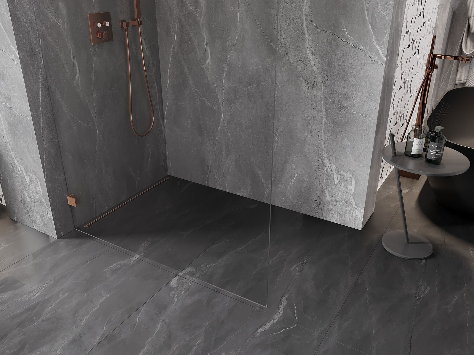 Mexen Lunar paroi de douche Walk-in gauche 70 x 200 cm, transparent 8 mm, cuivre brossé - 830-070-000-65-00-L
