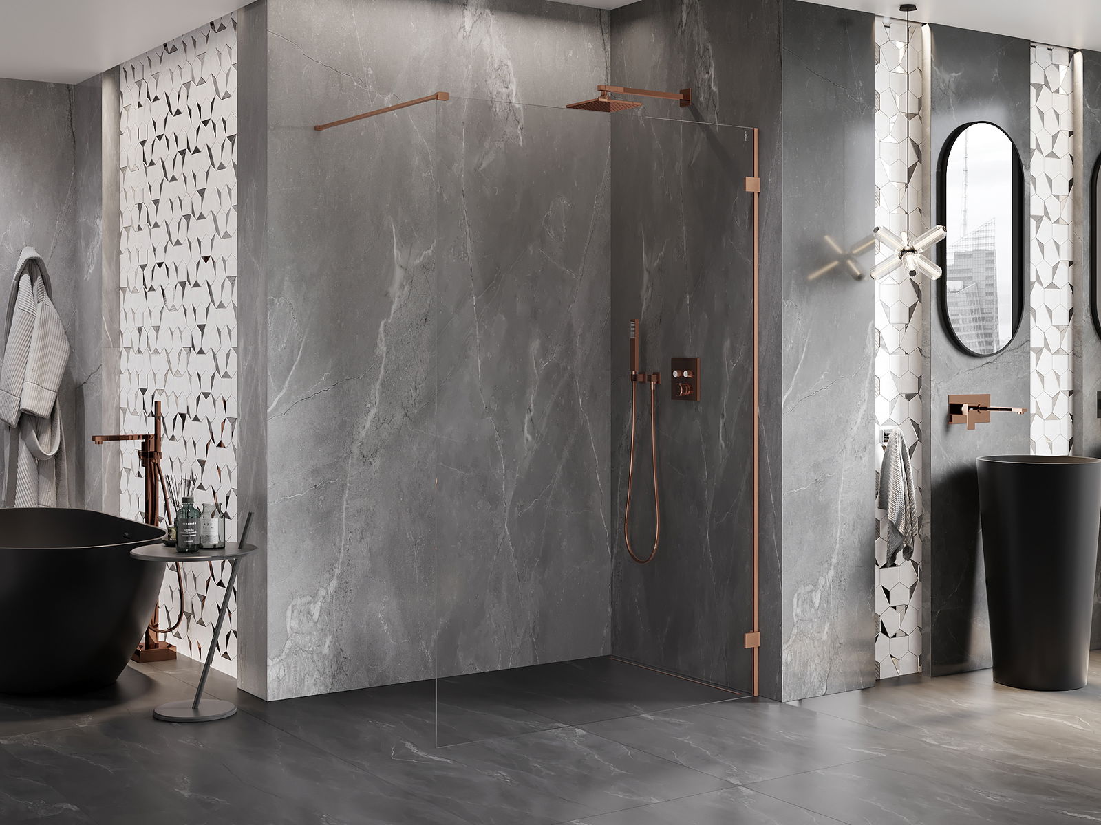 Mexen Lunar paroi de douche Walk-in droit 70 x 200 cm, transparent 8 mm, cuivre brossé - 830-070-000-65-00-P