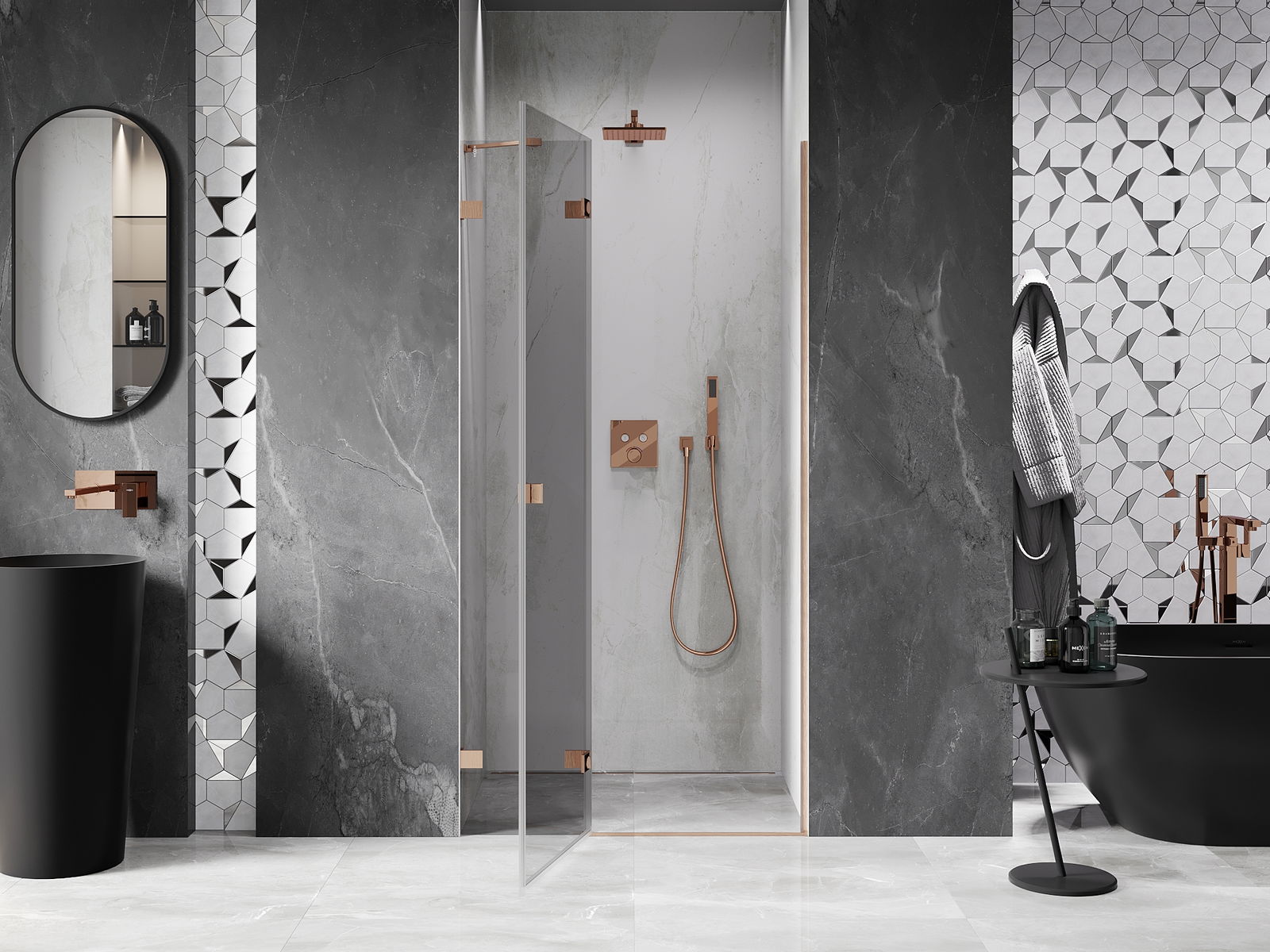 Mexen Lunar porte de douche pivotante gauche 115 cm, transparent, cuivre brossé - 834-115-000-65-00-L