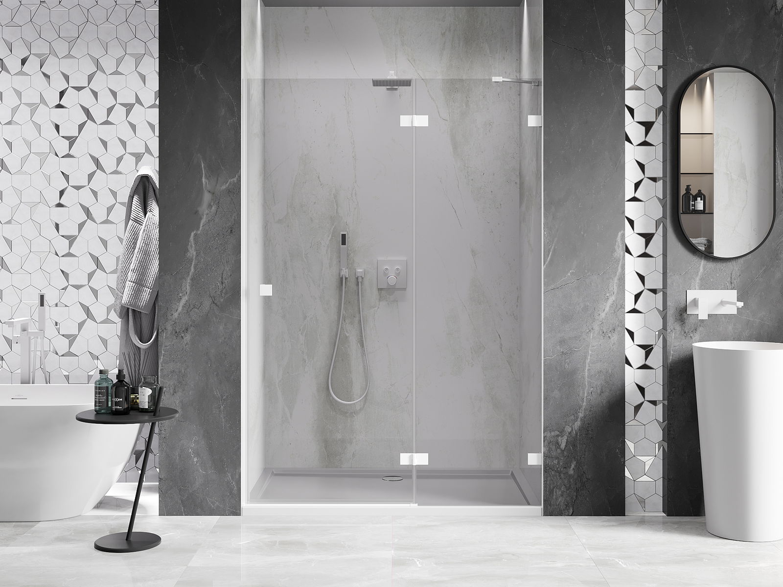 Mexen Lunar porte de douche pivotante droite 140 cm, transparent, blanc - 834-140-000-20-00-P
