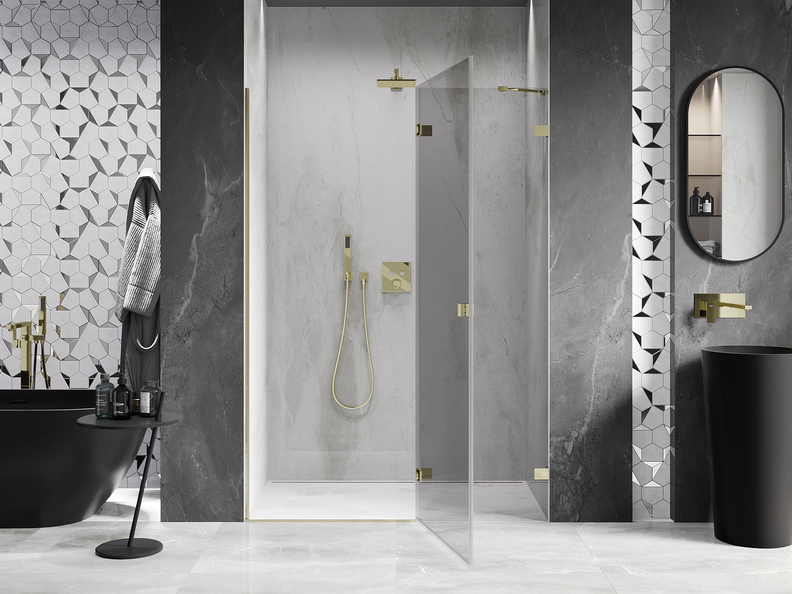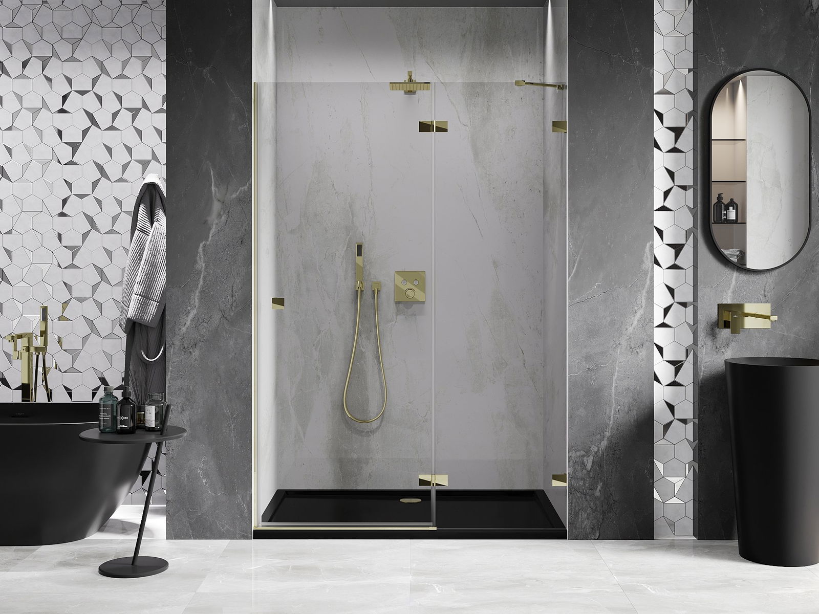 Mexen Lunar porte de douche battante droite 135 cm, transparent, doré - 834-135-000-50-00-P
