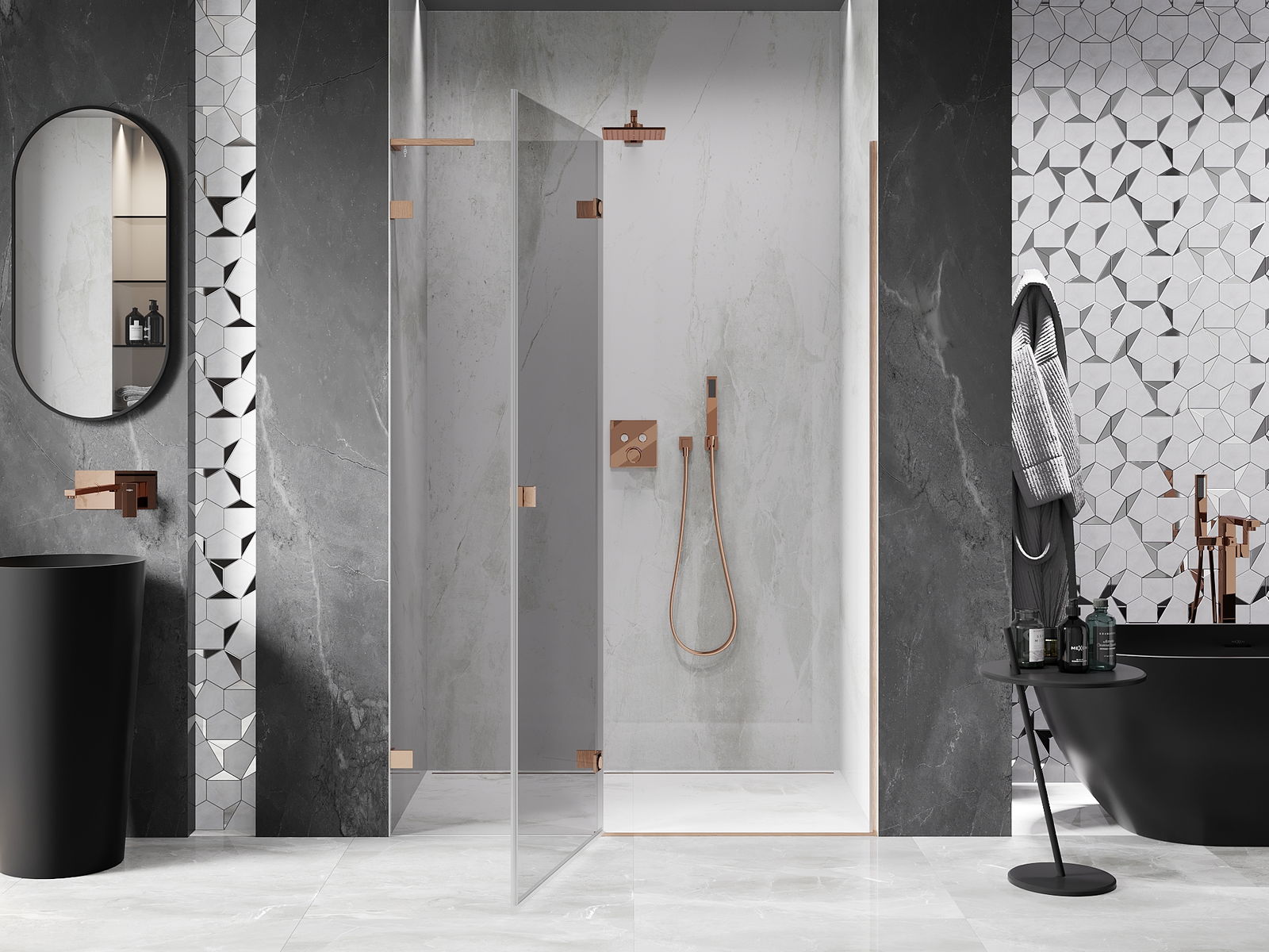 Mexen Lunar L porte de douche pivotante gauche 140 cm, transparent, cuivre brossé - 834L-140-000-65-00-L