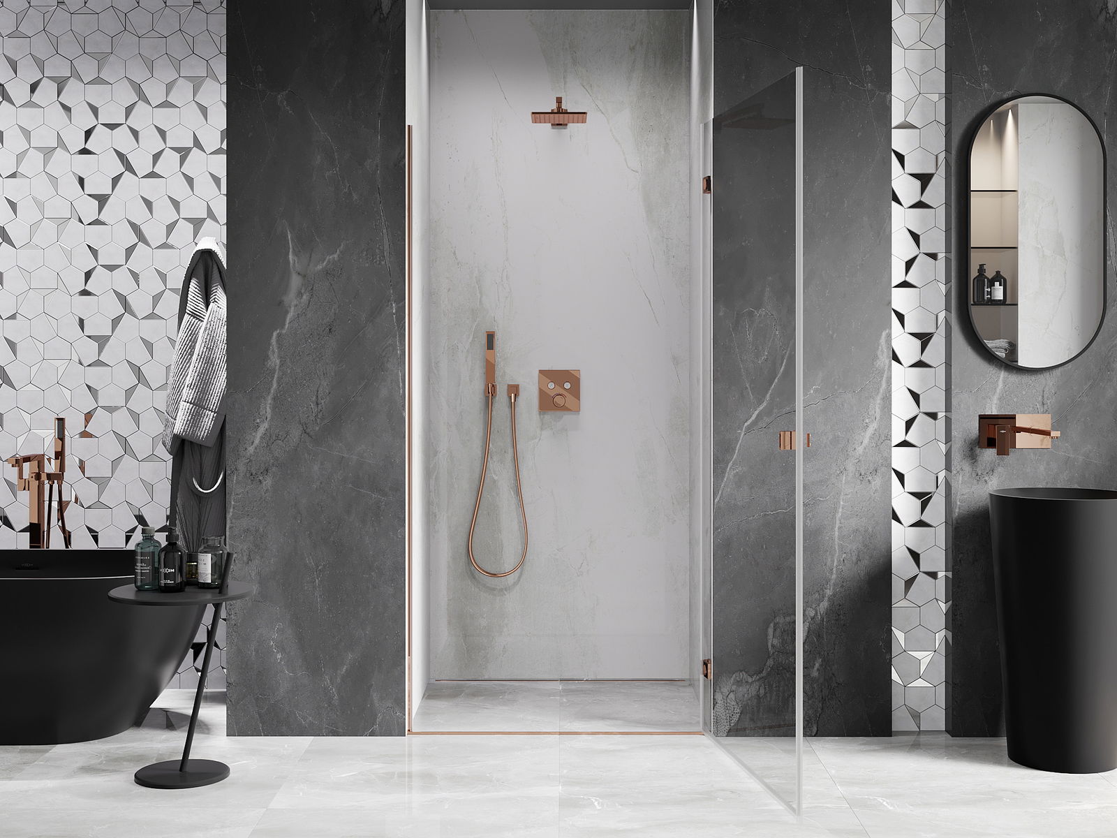 Mexen Lunar-B porte de douche pivotante droite 90 cm, transparent, or rose - 832-090-000-60-00-P