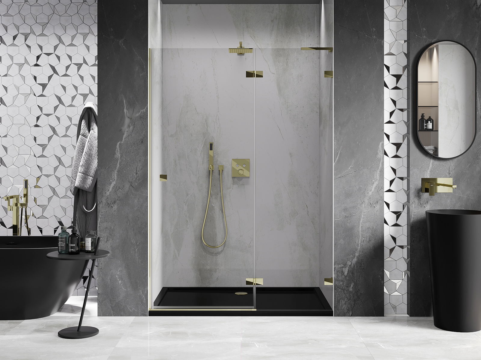 Les pinces et les charnières sont fabriquées en laiton très durable et forment en plus une surface de verre affleurante. C'est un excellent choix qui allie élégance, durabilité et design moderne. Grâce à ces solutions, la douche gagne en esthétique, tout en facilitant le maintien de la propreté.