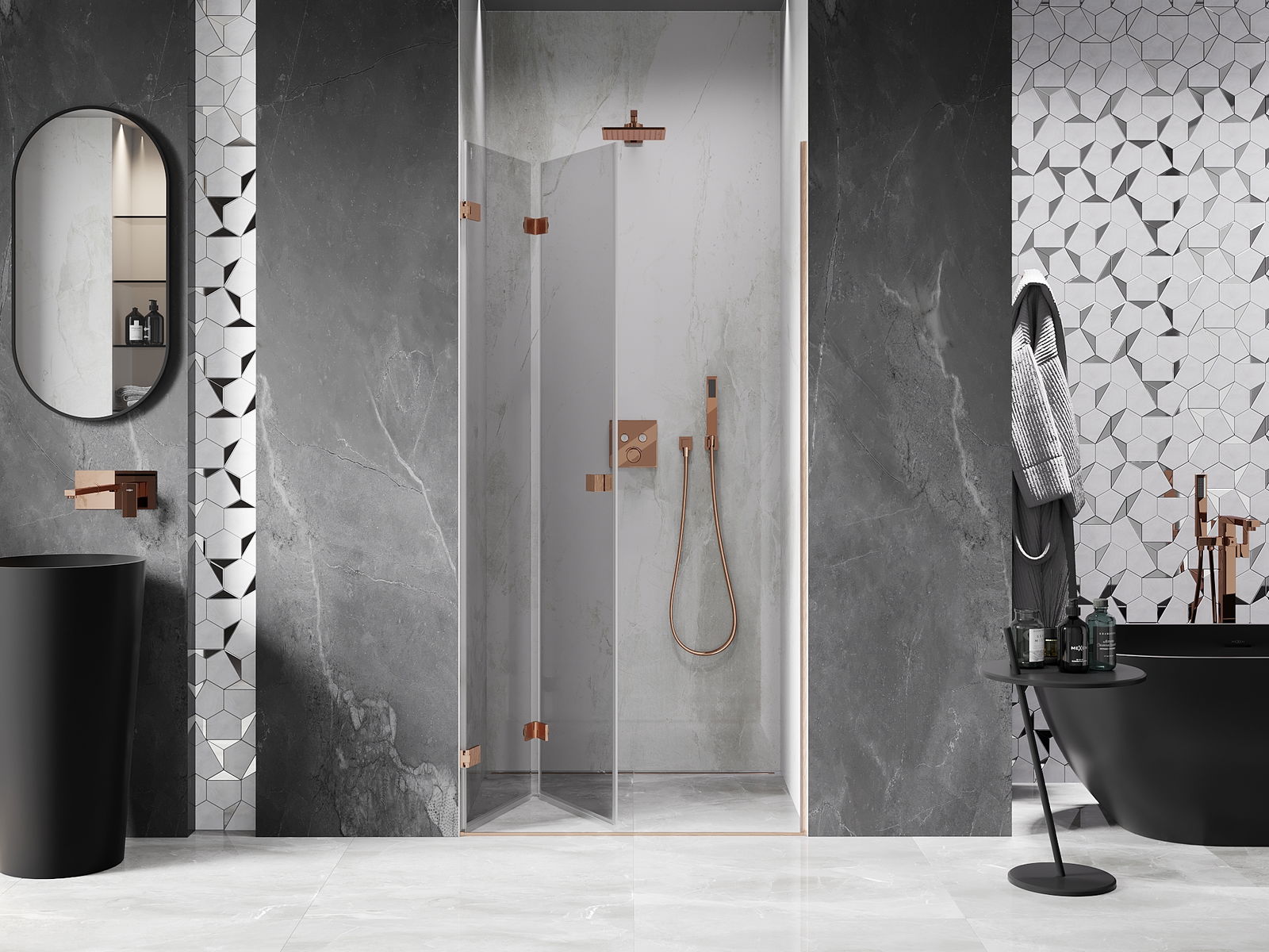 Mexen Lunar-F porte de douche pliante gauche 65 cm, transparent, cuivre brossé - 836-065-000-65-00-L