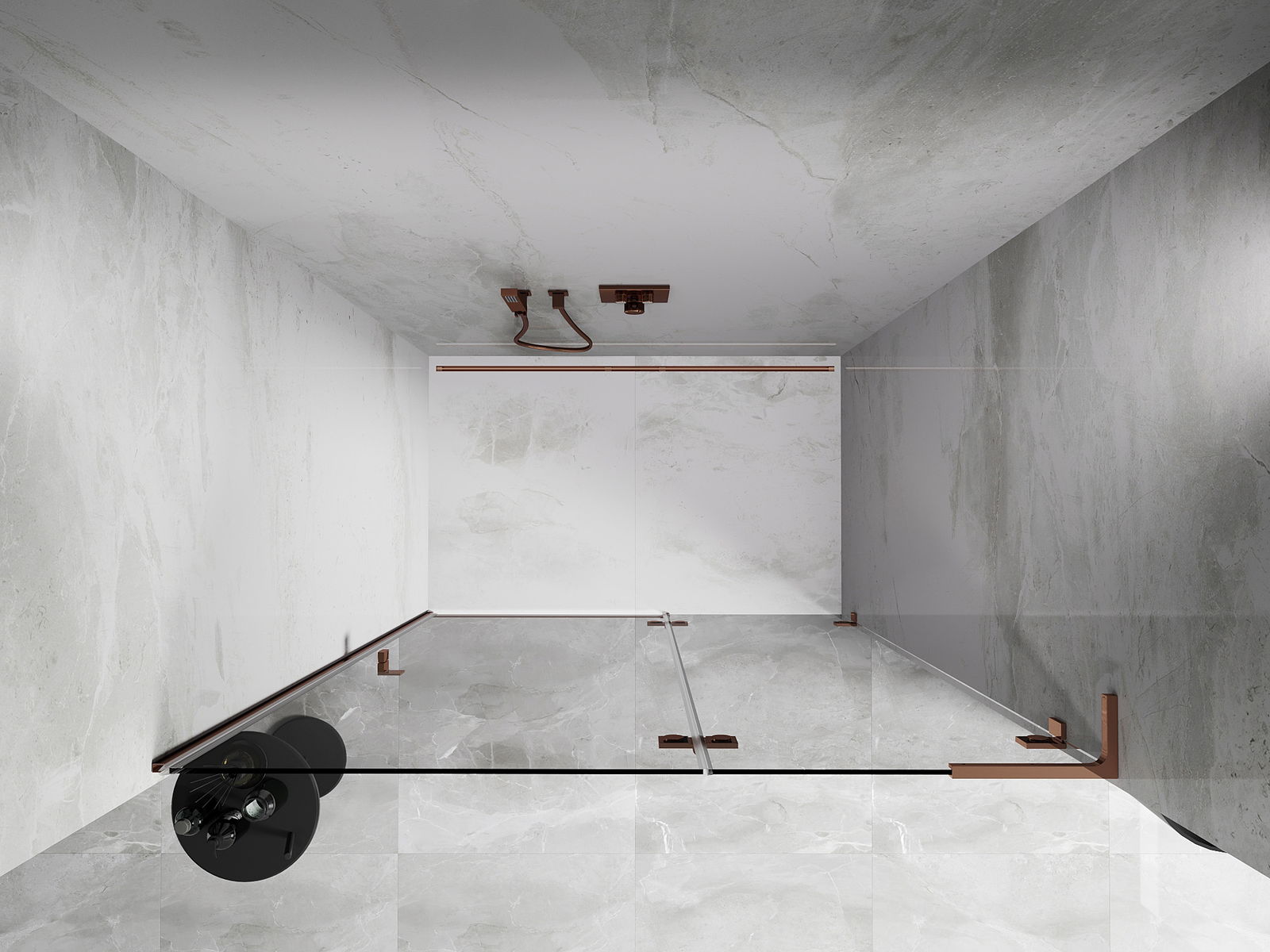 Mexen Lunar L porte de douche battante droite 135 cm, transparent, or rose - 834L-135-000-60-00-P