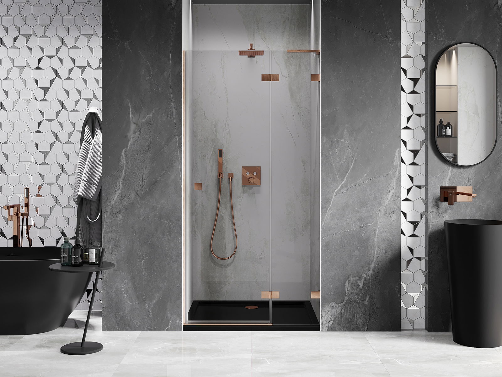 Mexen Lunar L porte de douche battante droite 120 cm, transparent, cuivre brossé - 834L-120-000-65-00-P
