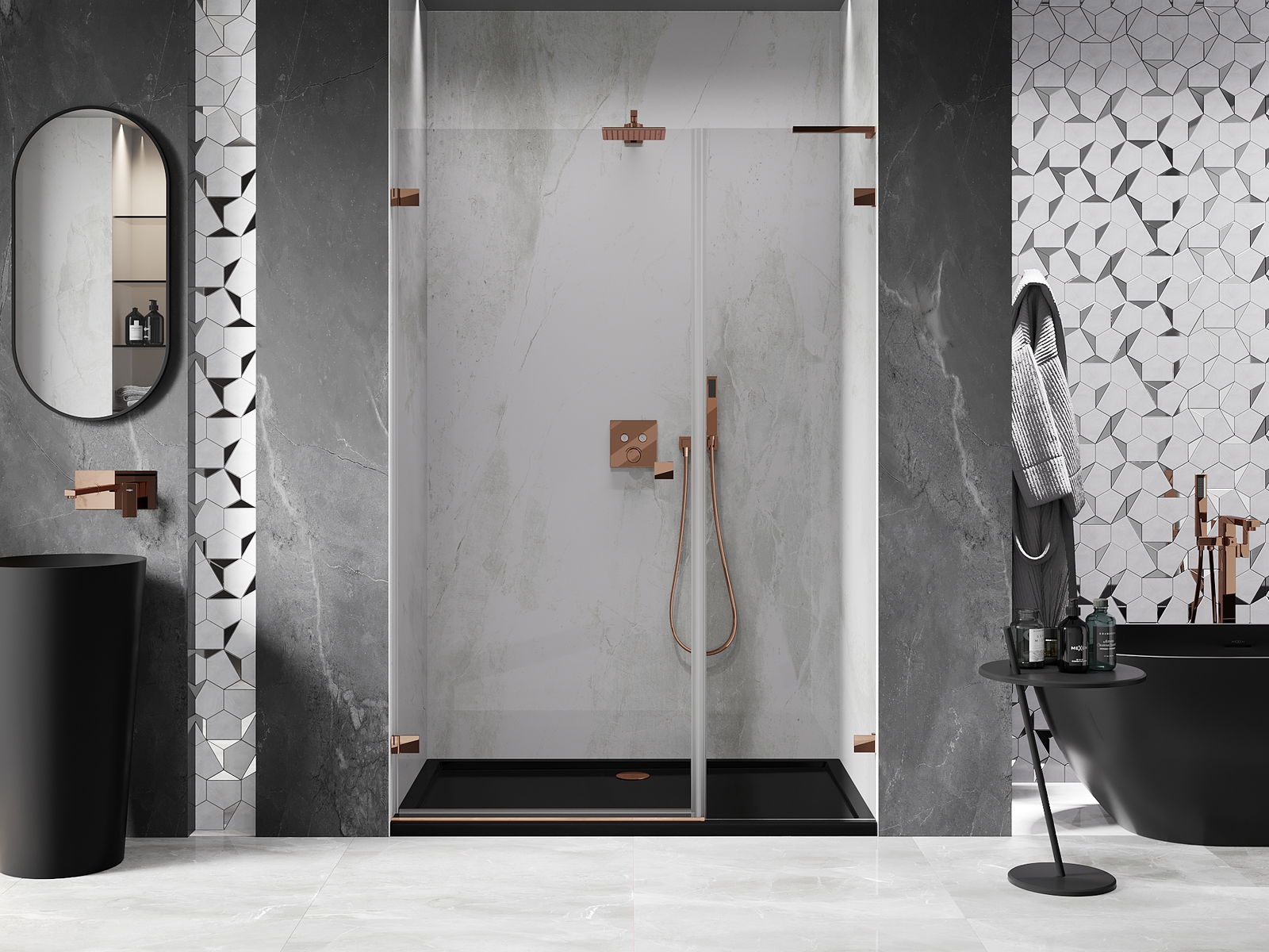 Mexen Lunar-B L porte de douche battante gauche 135 cm, transparent, or rose - 832SL-135-050-60-00-L