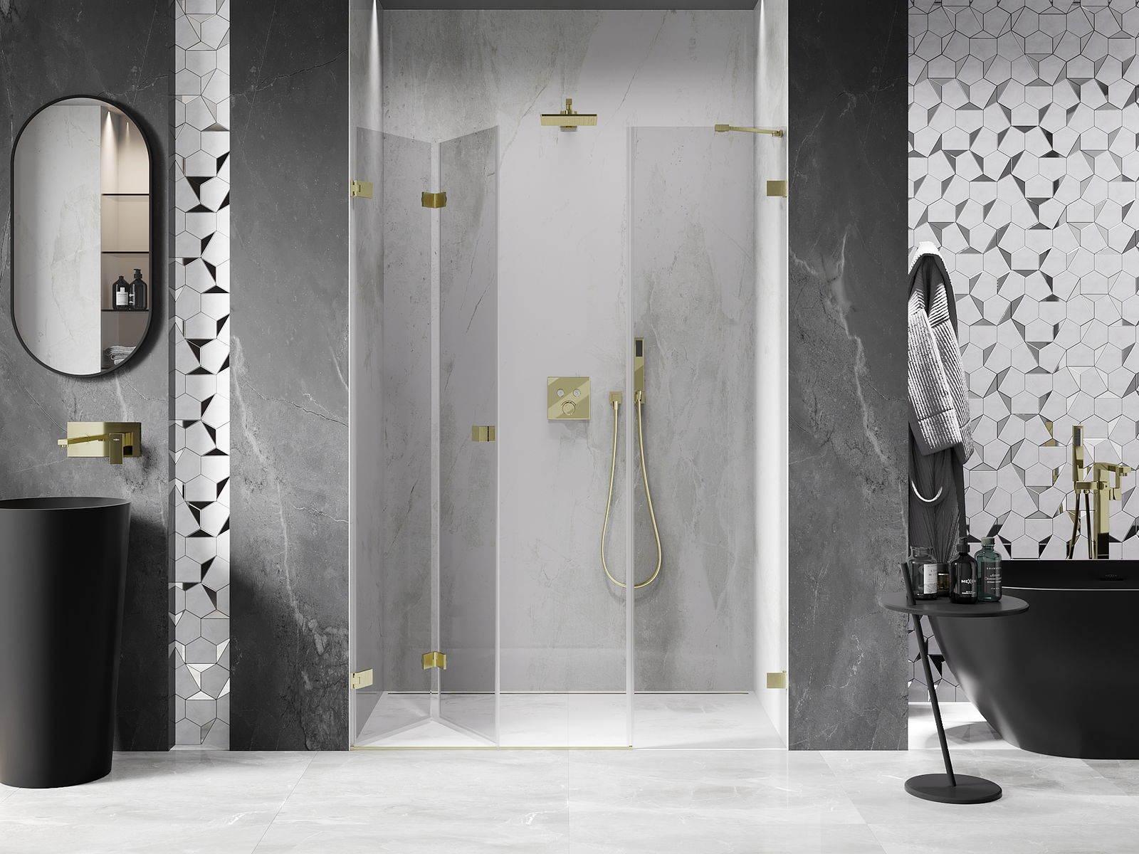 Mexen Lunar-F porte de douche pliable gauche 150 cm, transparent, doré brossé - 836S-150-050-55-00-L