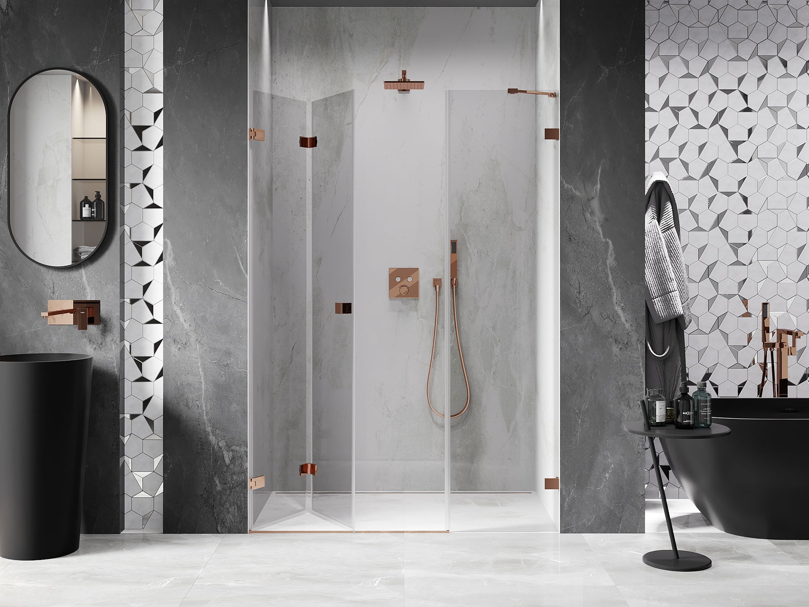 Mexen Lunar-F porte de douche pliantes gauche 120 cm, transparent, or rose - 836S-120-050-60-00-L
