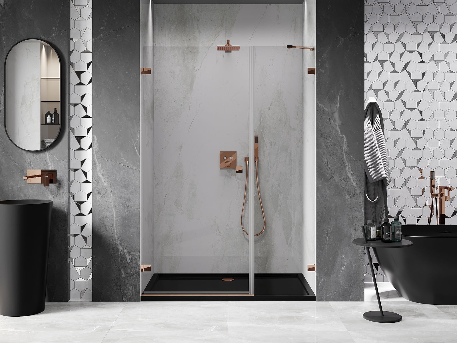 Mexen Lunar-B porte de douche pivotante gauche 130 cm, transparent, or rose - 832S-130-050-60-00-L