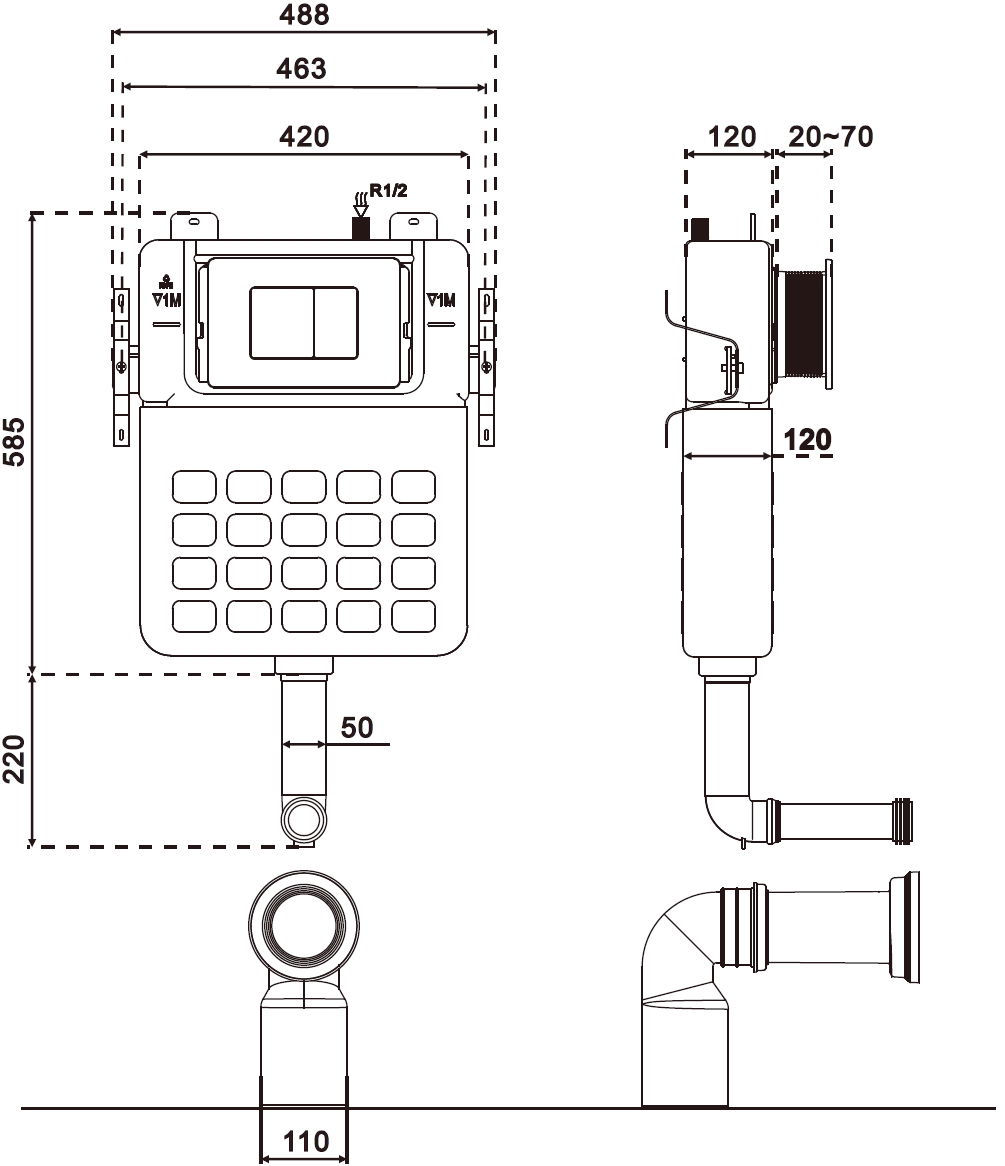 Le bouton est placé à l'avant du cadre, ce qui le rend facilement accessible. Cela facilite un démarrage rapide et pratique de la fonction de rinçage, améliorant ainsi le confort d'utilisation quotidienne des toilettes.